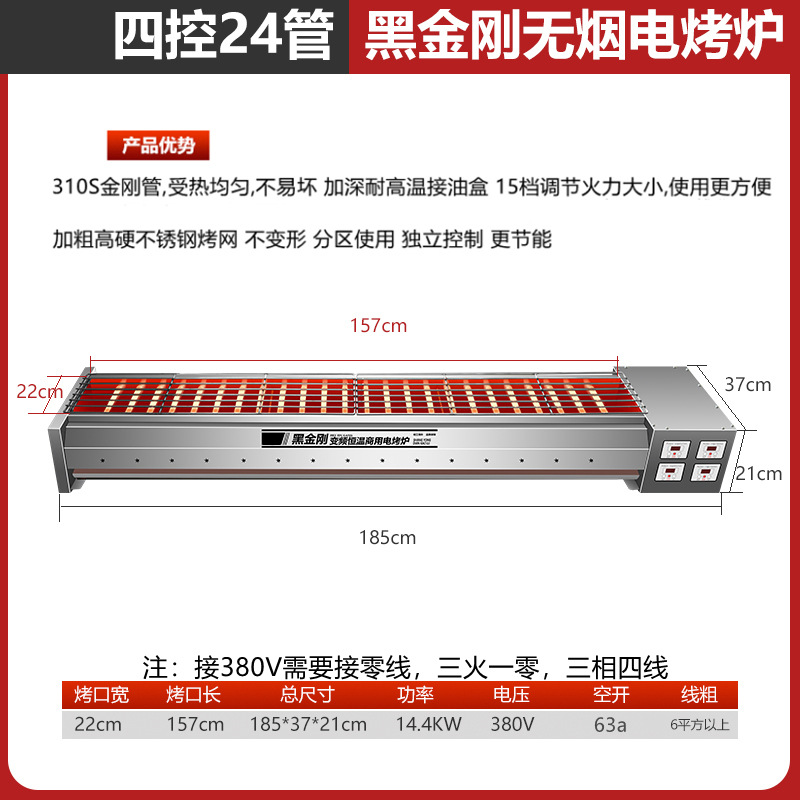 • [가변 주파수 항온] 제어 장치 4개, 튜브 24개, 그릴 개구부 1.85m개, 157*22cm, 14.4KW(380V 연결 회로 차단기)