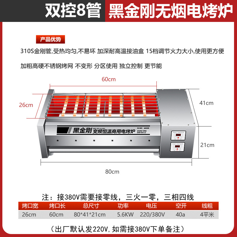 • [주파수 변환 항온] 제어 2개, 튜브 8개, 그릴 개구부 0.8m개, 60*16cm, 4KW(플러그 포함)