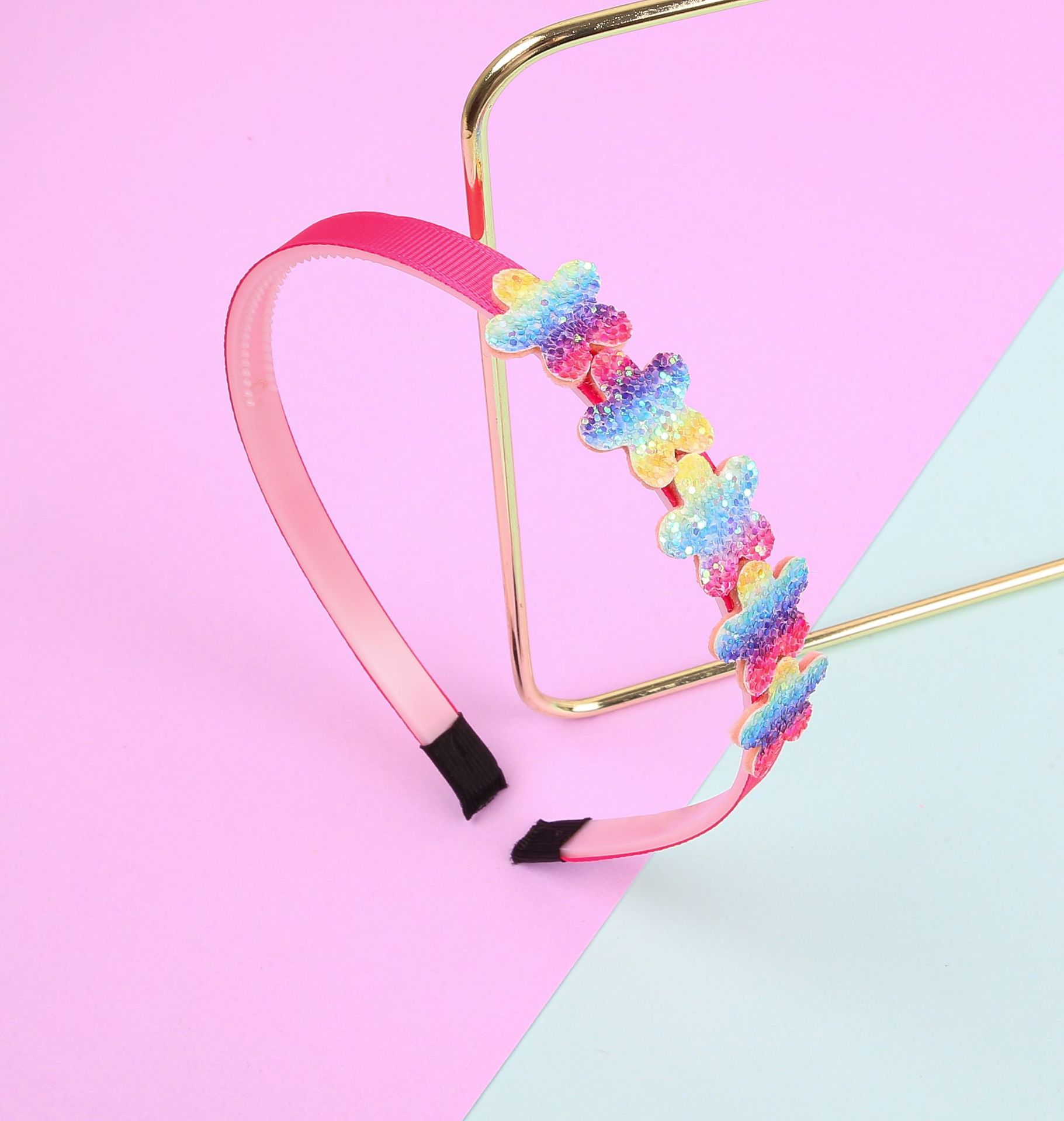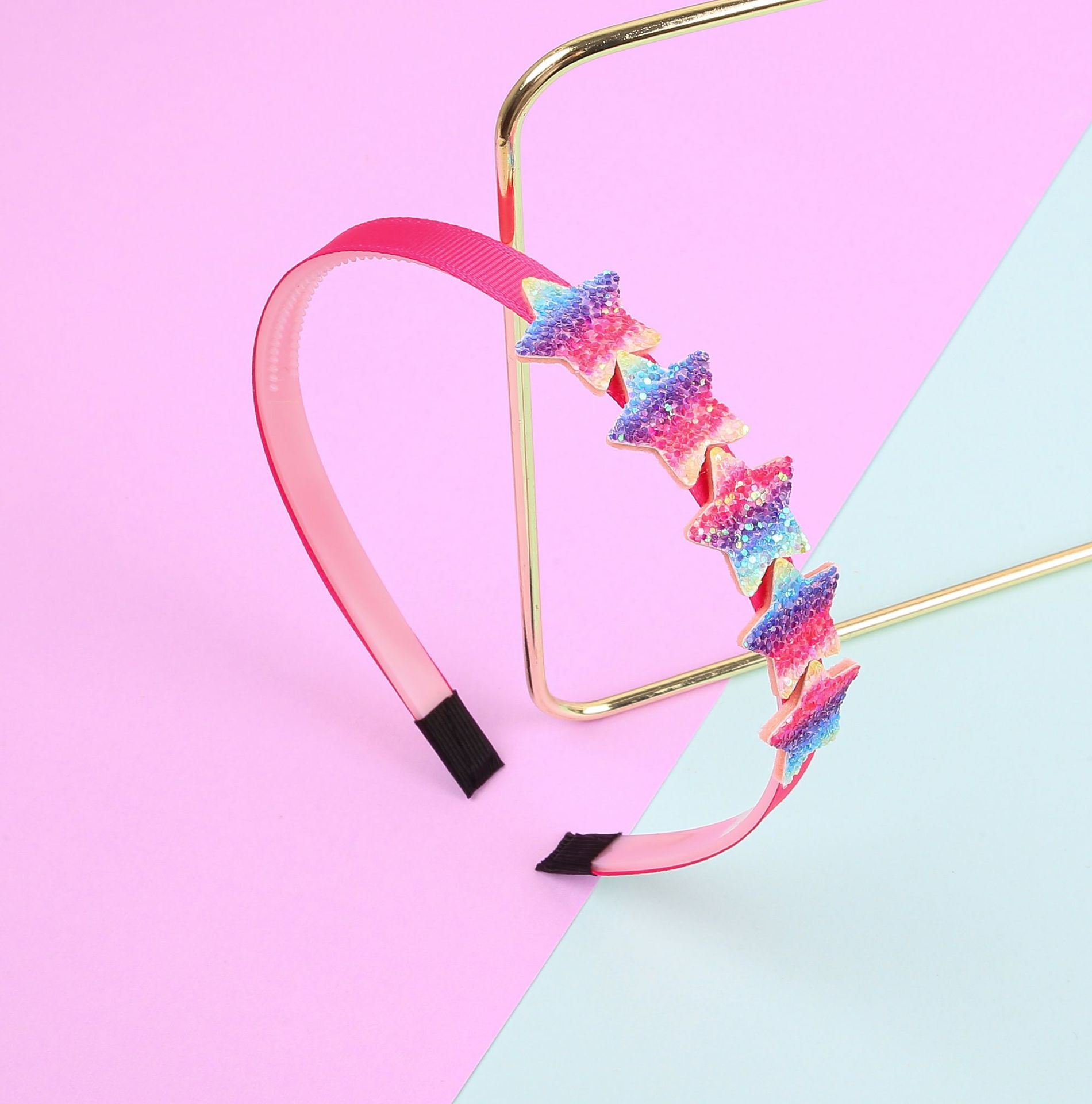 【名称】时尚彩色爱心头箍渐变星星发箍渐变彩虹色花朵发箍儿童派对发饰