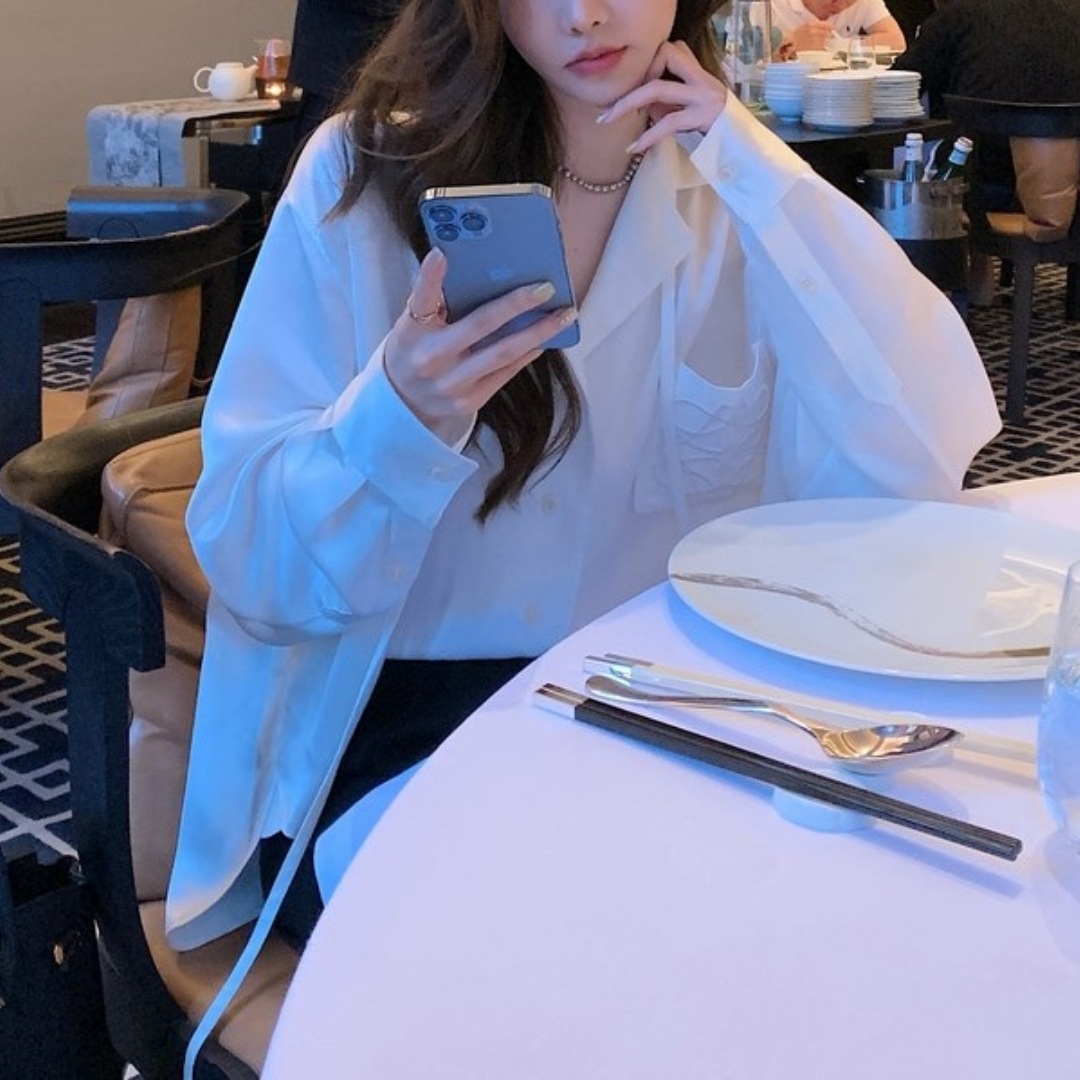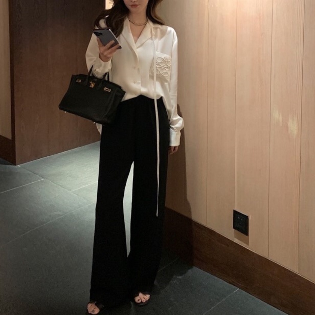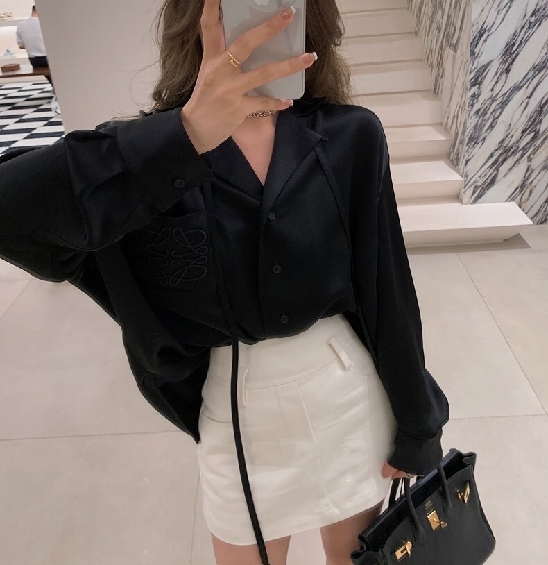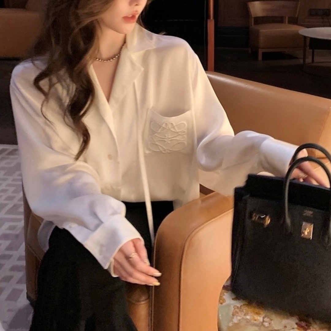 봄 여름 LO*WE 아세테이트 셔츠 여성 고급 새틴 광택 1.8만 바늘 자수 셔츠 가디건스토어 가기