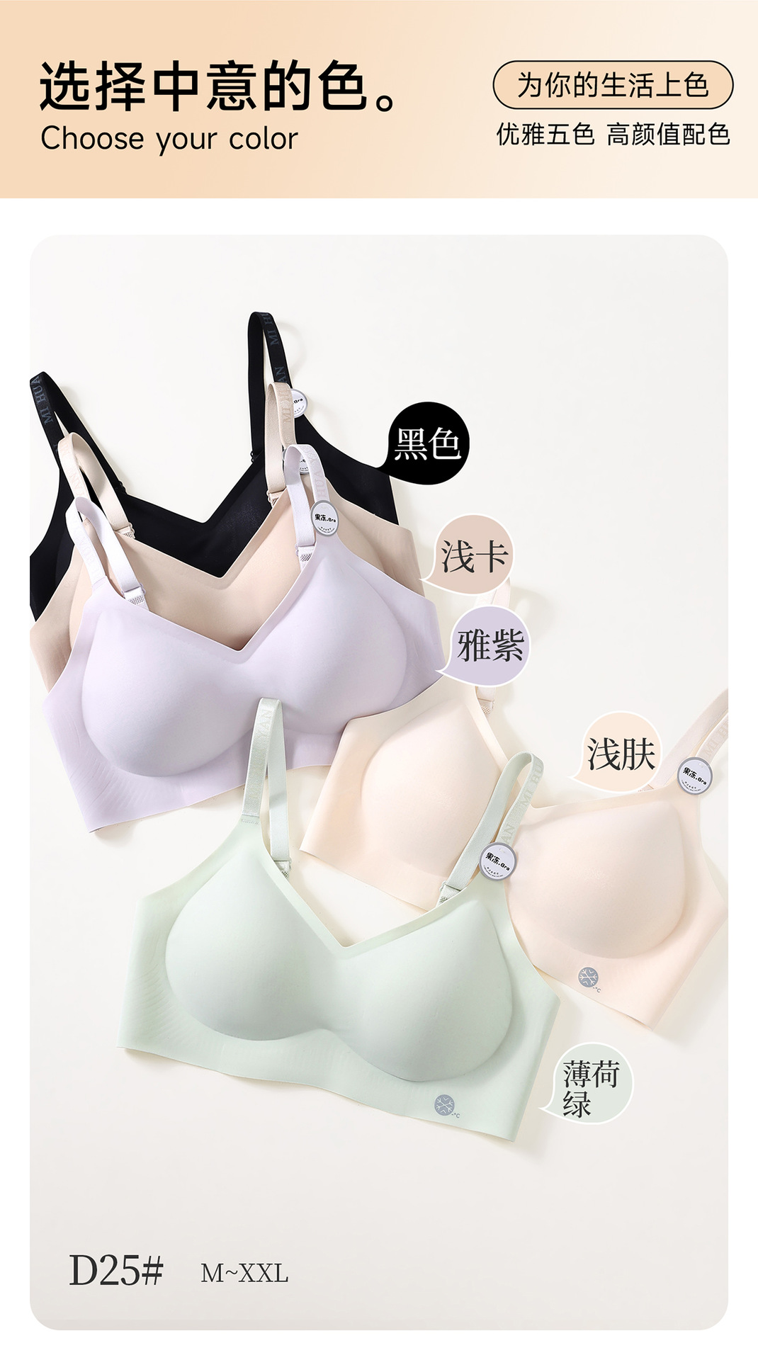 2025 여름 젤리 소프트 지원 비 마킹 속옷 여성 고정 컵 비 강철 반지 통기성 편안한 네일 유방 브래지어스토어 가기
