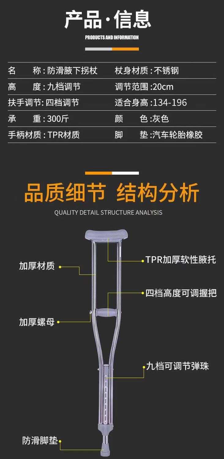 스테인리스 이중 지팡이, 겨드랑이 지팡이, 골절 환자, 젊은이, 장애인, 노인, 조절 가능한 등산 지팡이, 야외용스토어 가기
