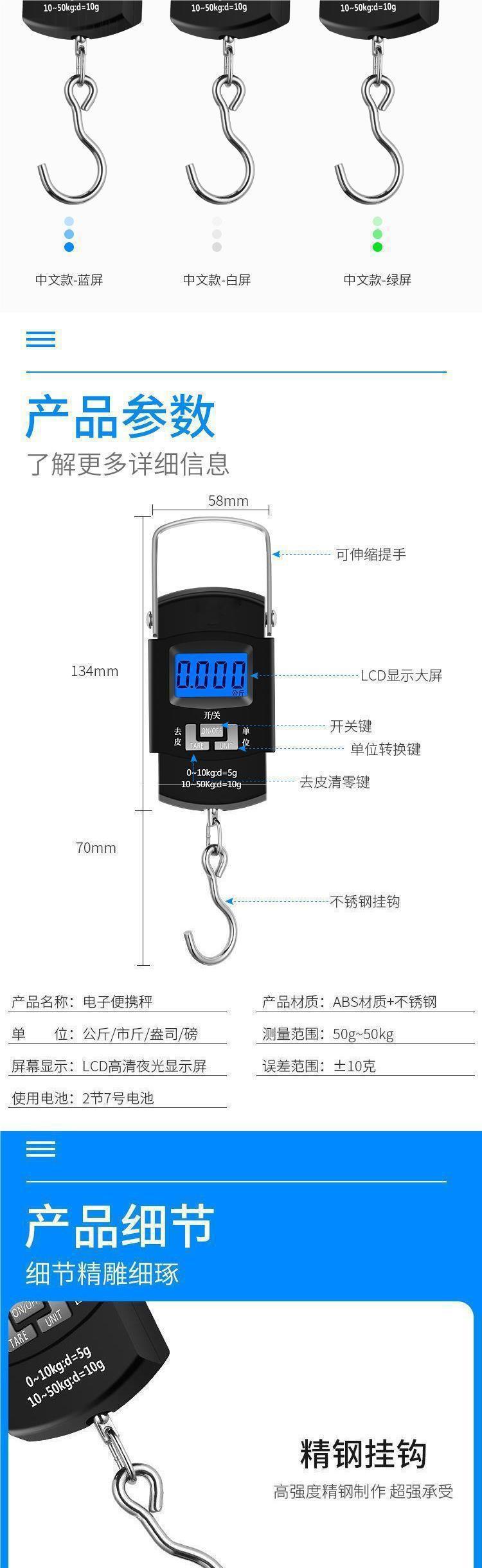 Shengbangrong 휴대용 저울 전자 저울 Weiheng 고정밀 50kg 소형 휴대용 미니 수하물 저울 휴대용 구매스토어 가기