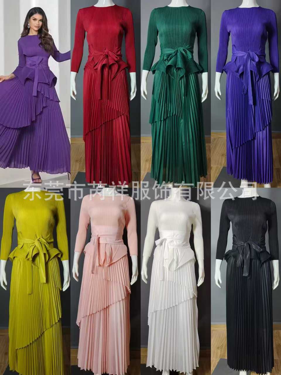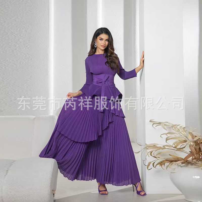 미야케 미야케 플리츠 불규칙 랜턴 스커트 + 빅 스윙 롱 스커트 투피스 여성 드레스 크로스보더 중동