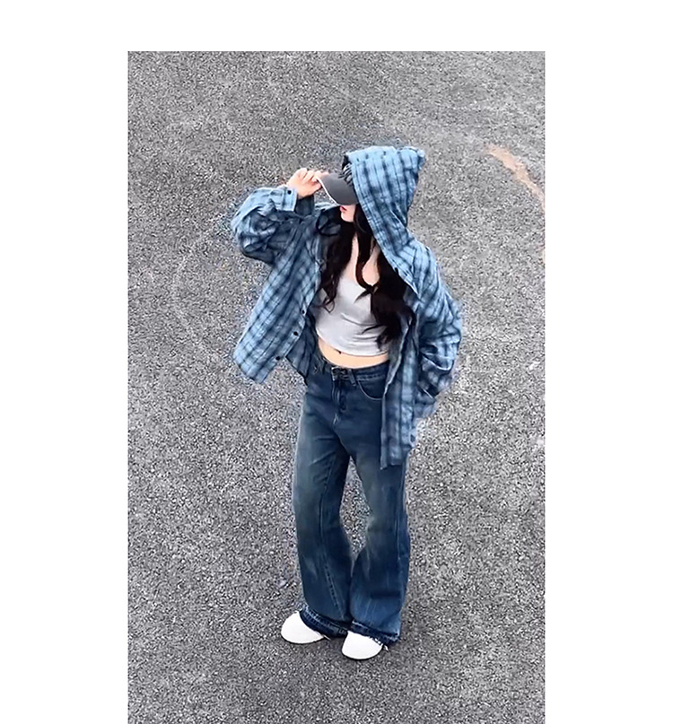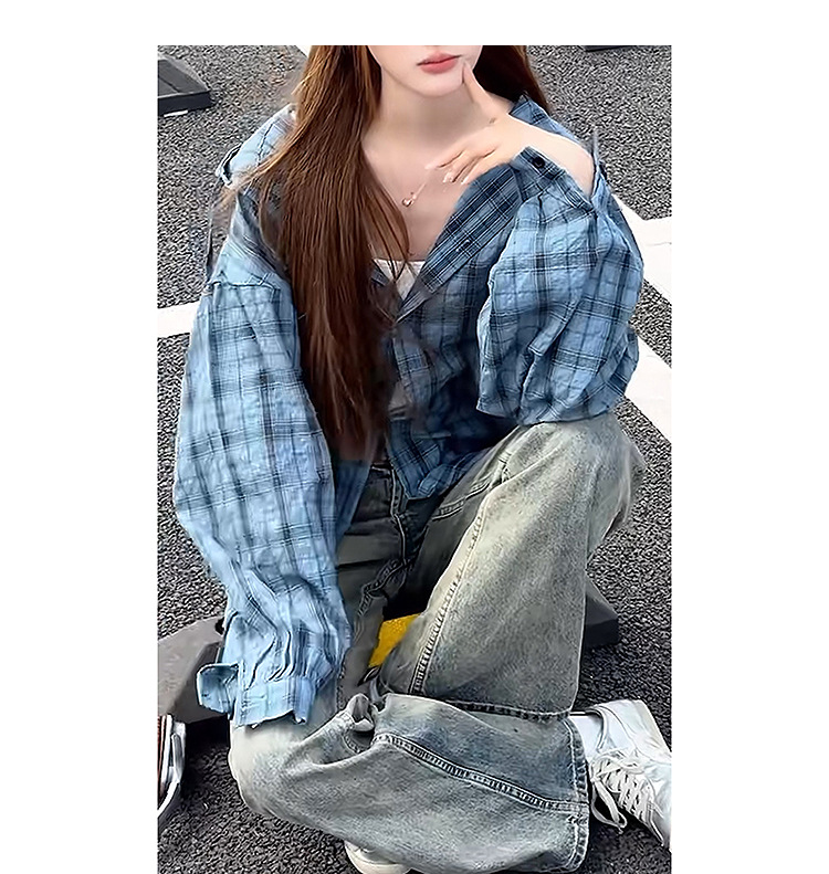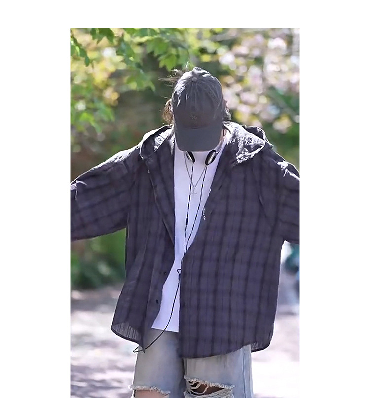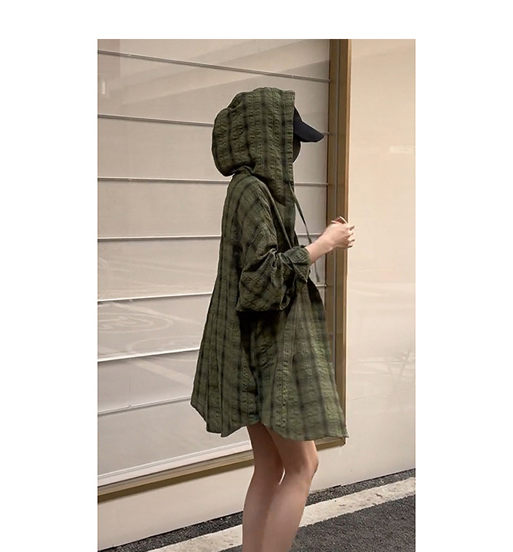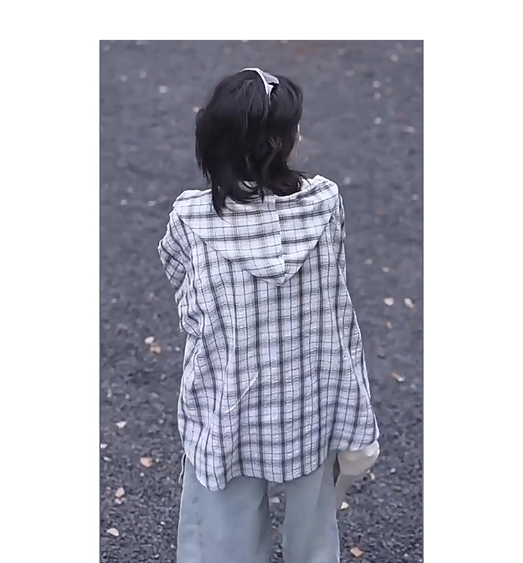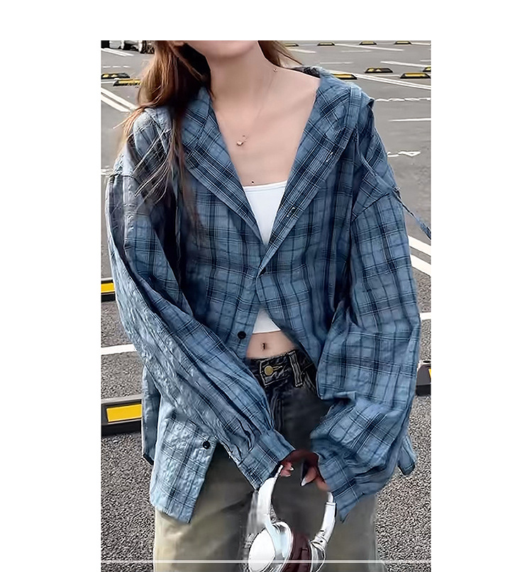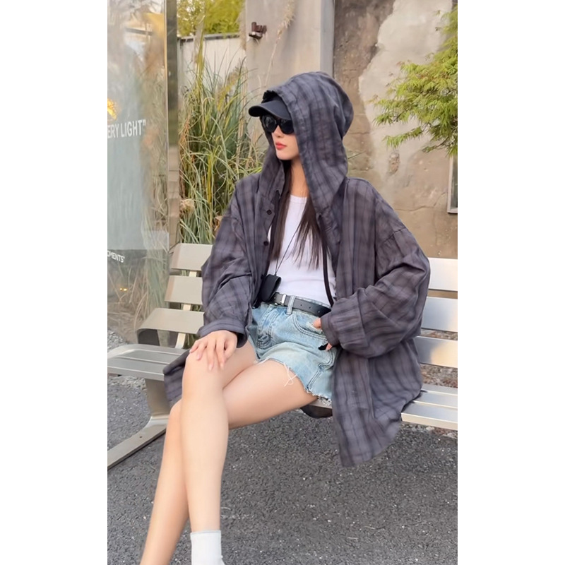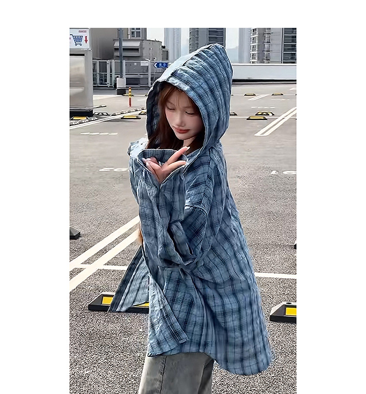 긴 소매 후드 체크 무늬 선스크린 셔츠 남자 여름 복고풍 아이스 실크 빠른 건조 캐주얼 게으른 커플 셔츠 재킷 남자스토어 가기