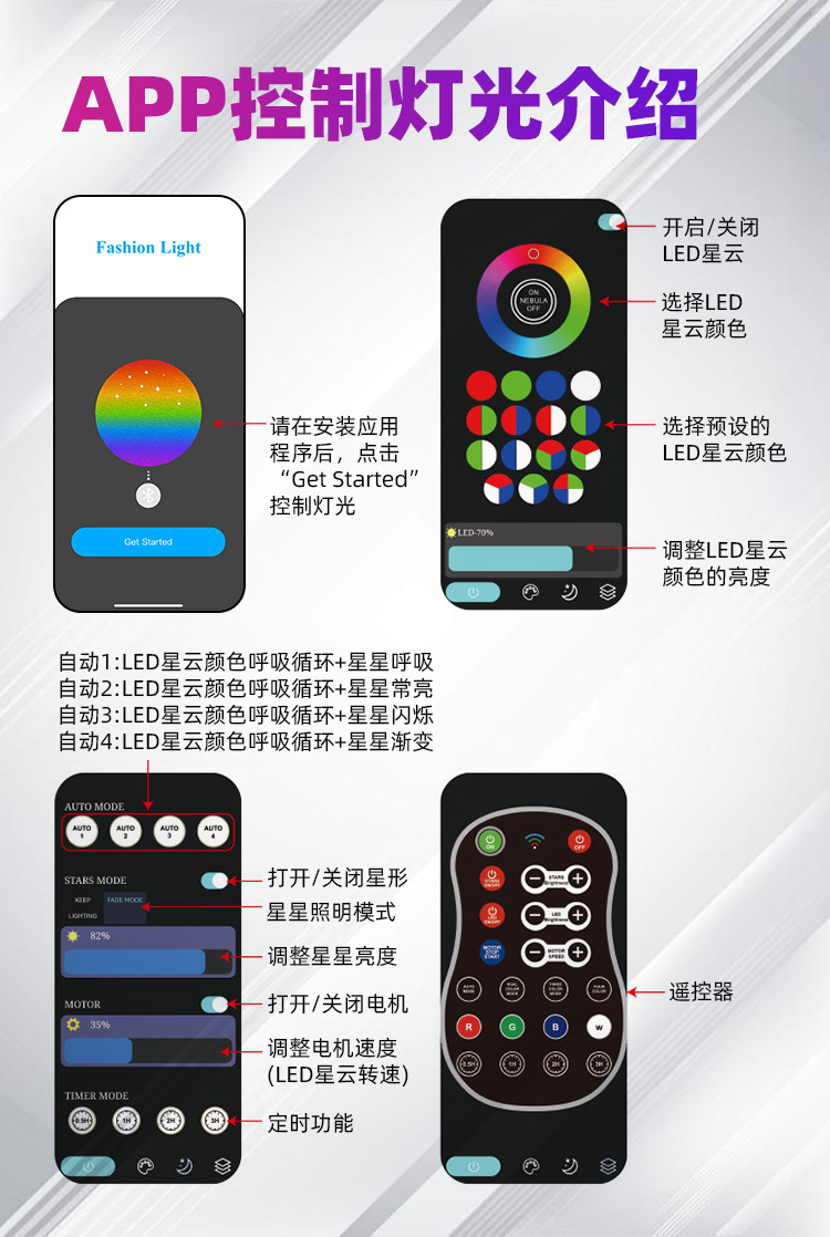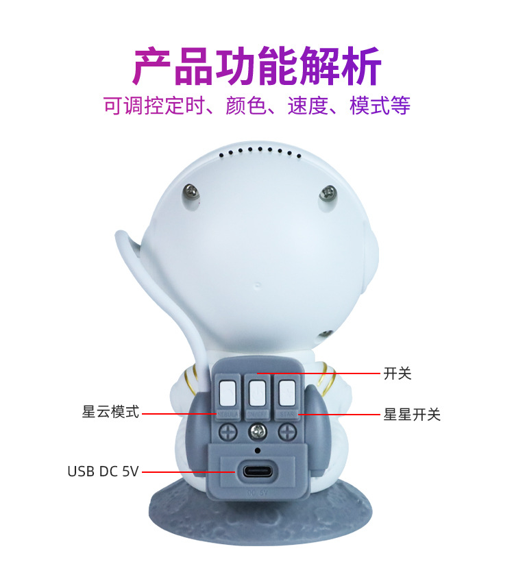 휴대폰 앱 우주비행사 별빛 램프 은하수 프로젝션 램프 분위기 조명 침실 우주비행사 USB 침대 옆 야간등