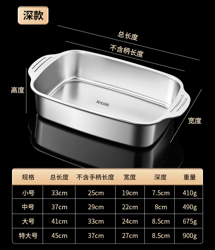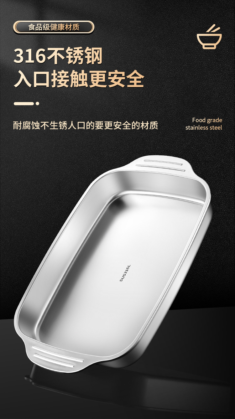 스테인레스 스틸 316 생선 구이 접시 가정용 양이 직사각형 화상 방지 인덕션 밥솥 뚜껑이있는 바베큐 사각형 접시 트레이 베이킹 팬스토어 가기