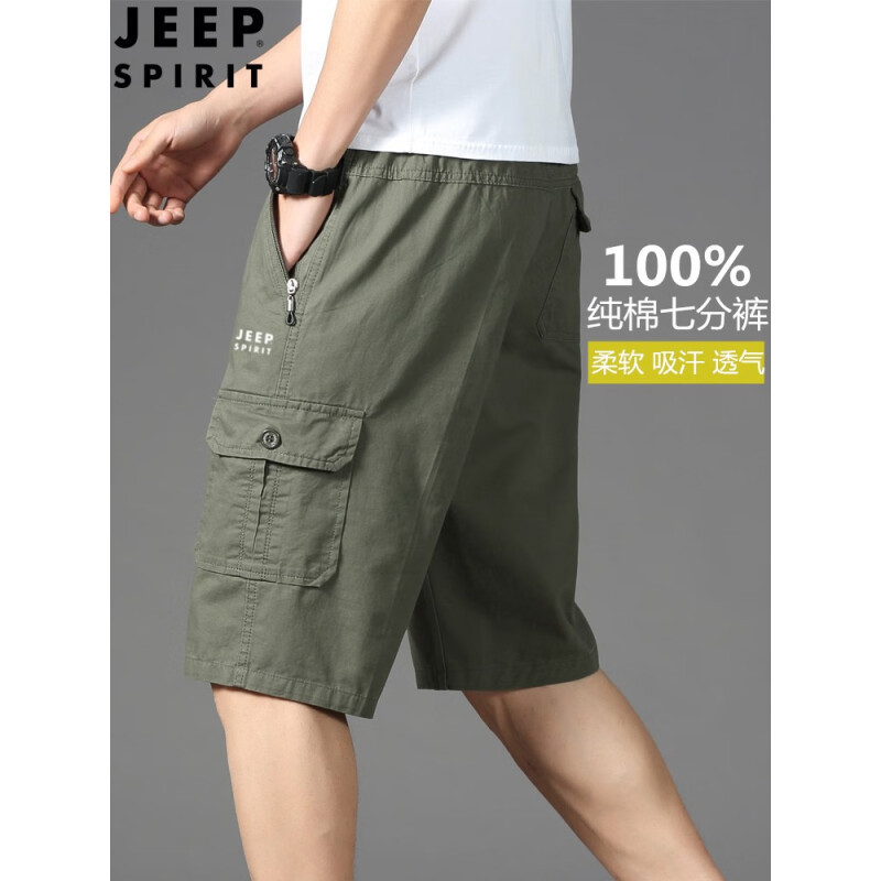 JEEP SPIRIT 지프 반바지 남자 여름 남자 순면 작업복 캐주얼 남성 카프리 바지 스트레이트 느슨한 플러스 사이즈스토어 가기