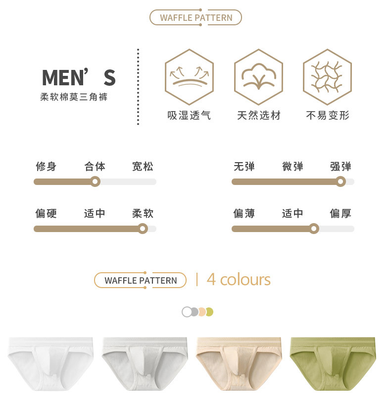 남성 속옷 와플 코튼 모달 패브릭 부드러운 통기성 1 룸 2 홀 총알 별도의 브리프스토어 가기