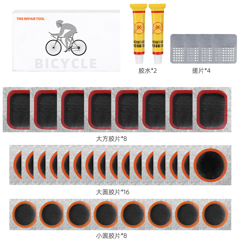 자전거 타이어 수리 도구 조합 자전거 냉장 고무 타이어 까마귀 접착제 무료 타이어 수리 도구 상자