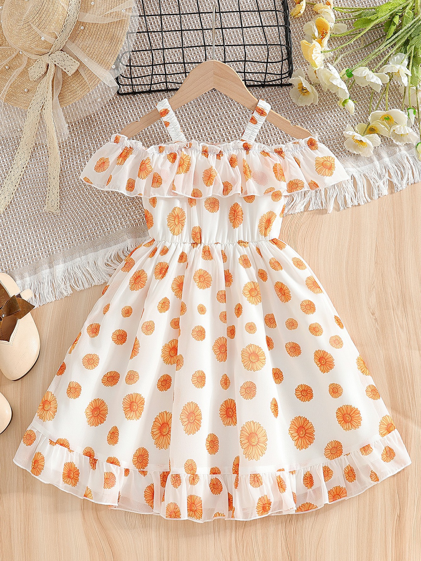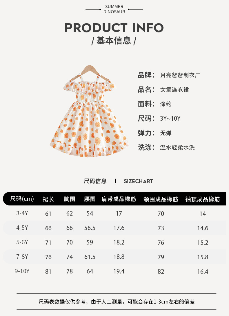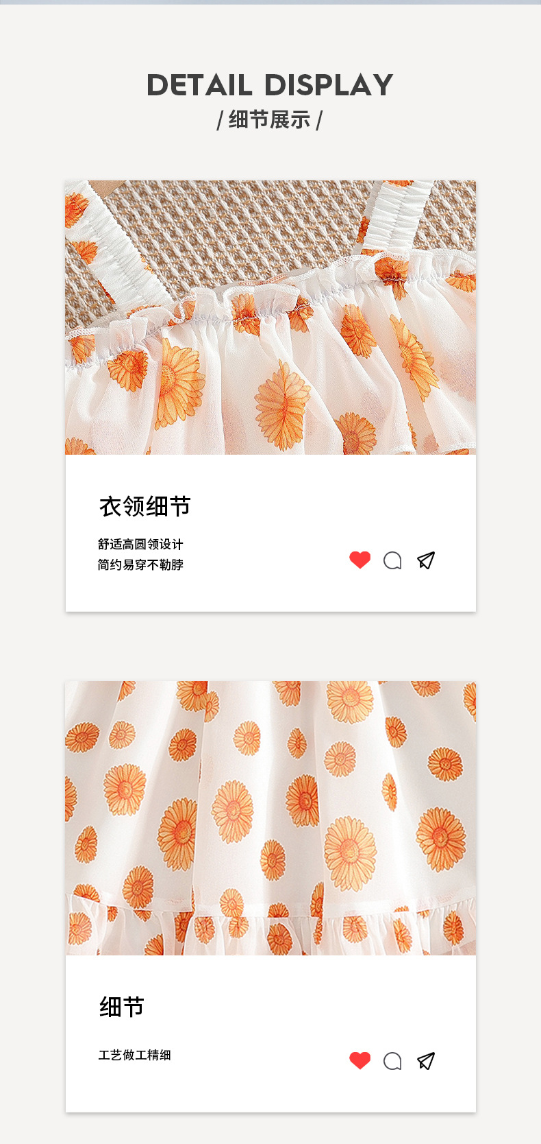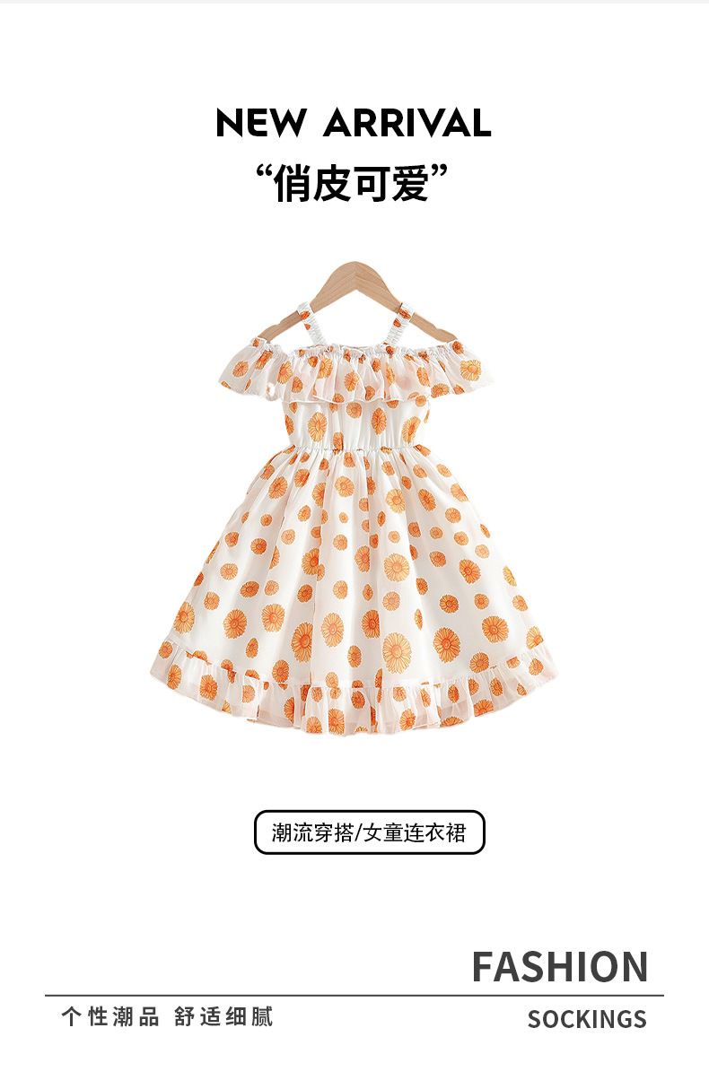 대외 무역 소녀 여름 슬링 원피스 오렌지 꽃 패턴 러플 칼라 어린이 케이크 스커트 공주 스커트스토어 가기