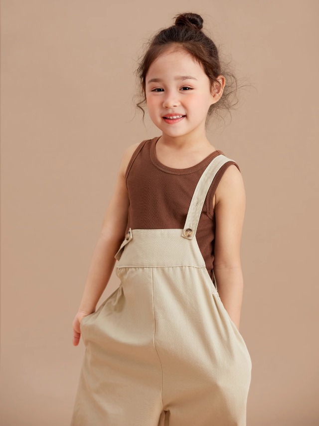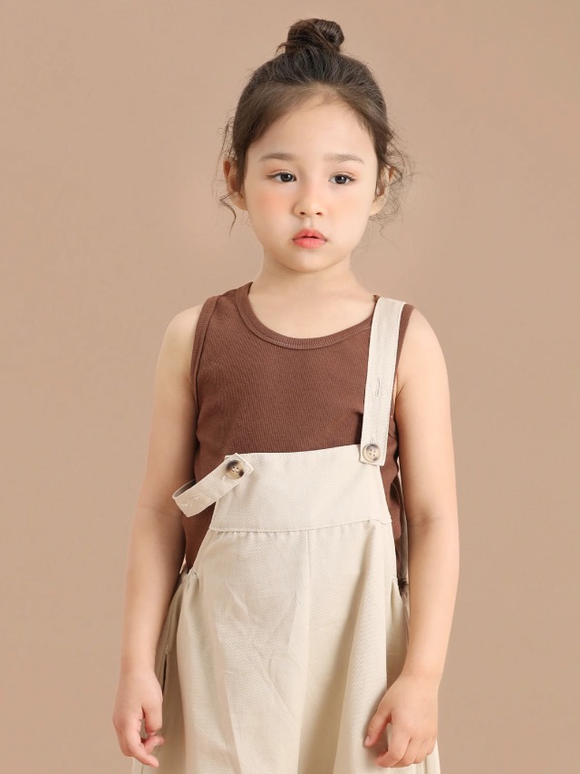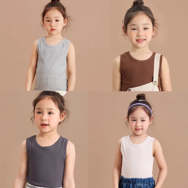 어린이 조끼 2025 여름 소녀 탑 슬링 스레드 그레이 베이비 클래스 소년을위한 민소매 외복