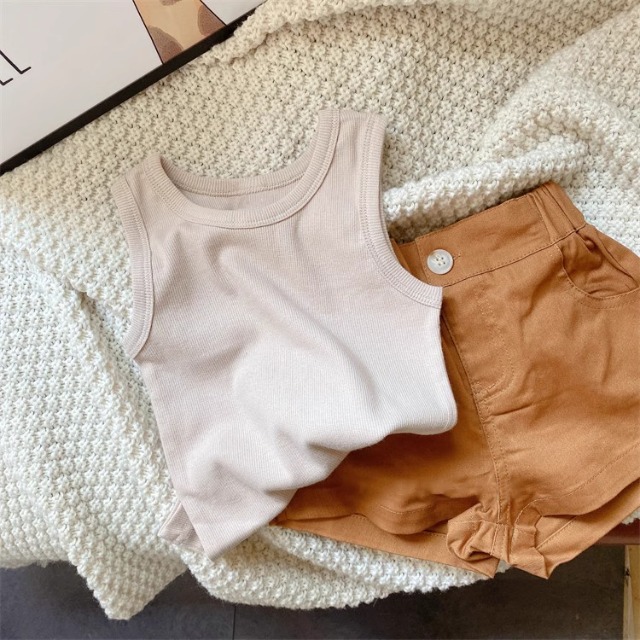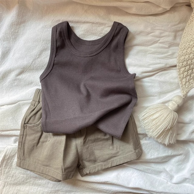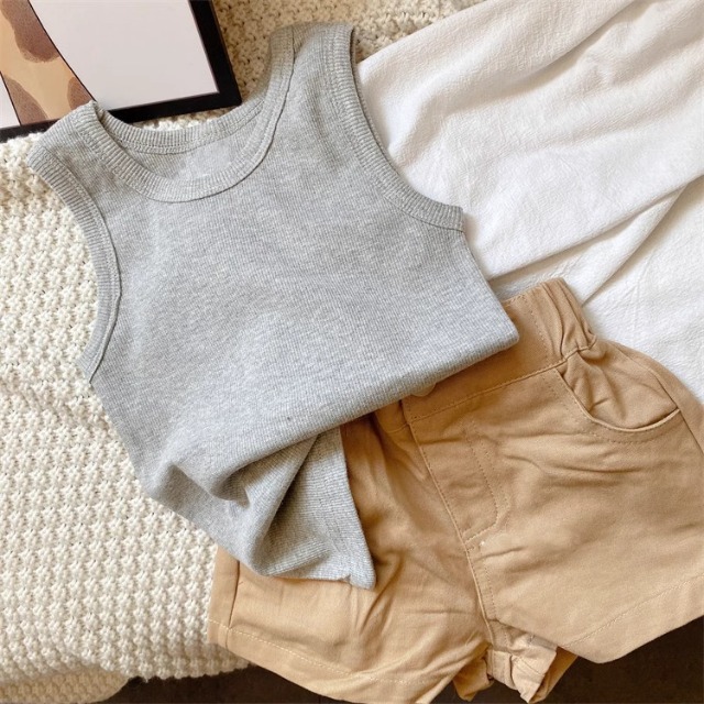어린이 조끼 2025 여름 소녀 탑 슬링 스레드 그레이 베이비 클래스 소년을위한 민소매 외복스토어 가기