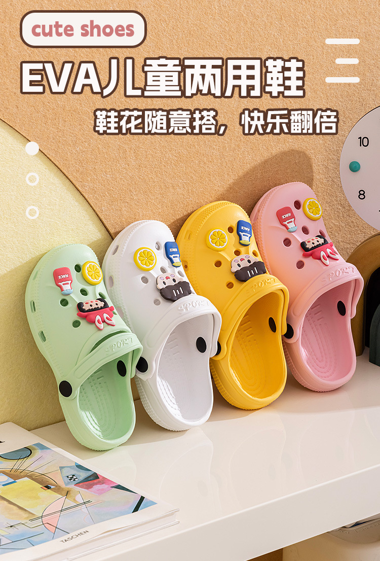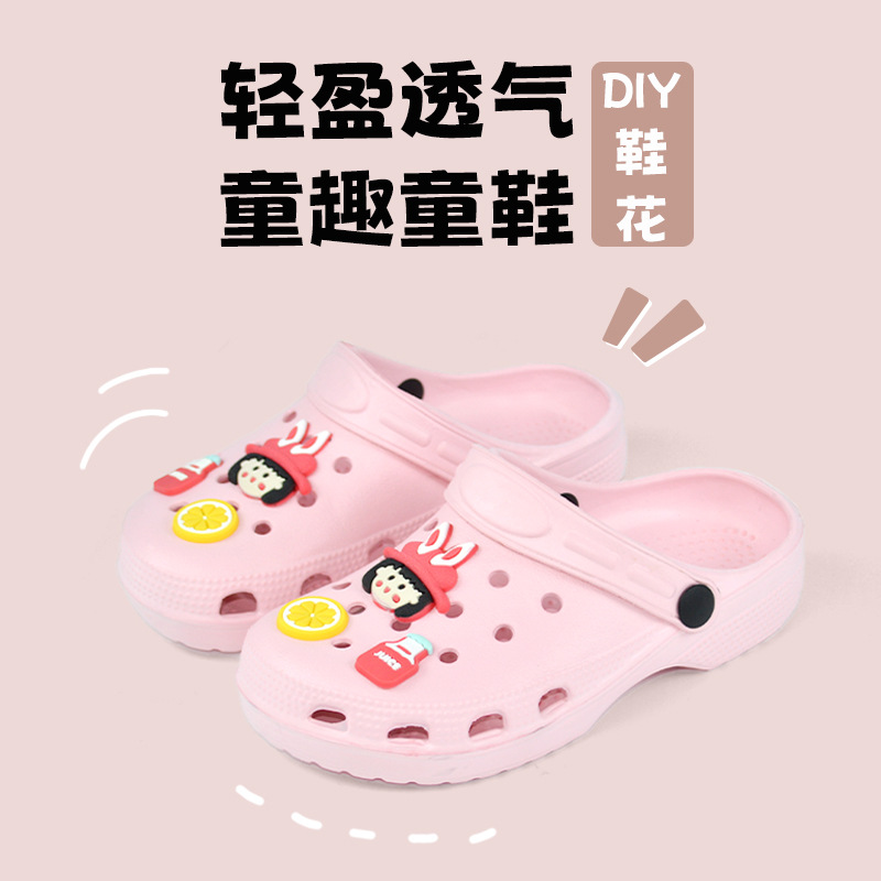 夏季儿童洞洞鞋 配卡通鞋花,鞋花均是放在鞋子里面 需要客户自己安装扣上!,如有其他要求可以定做,