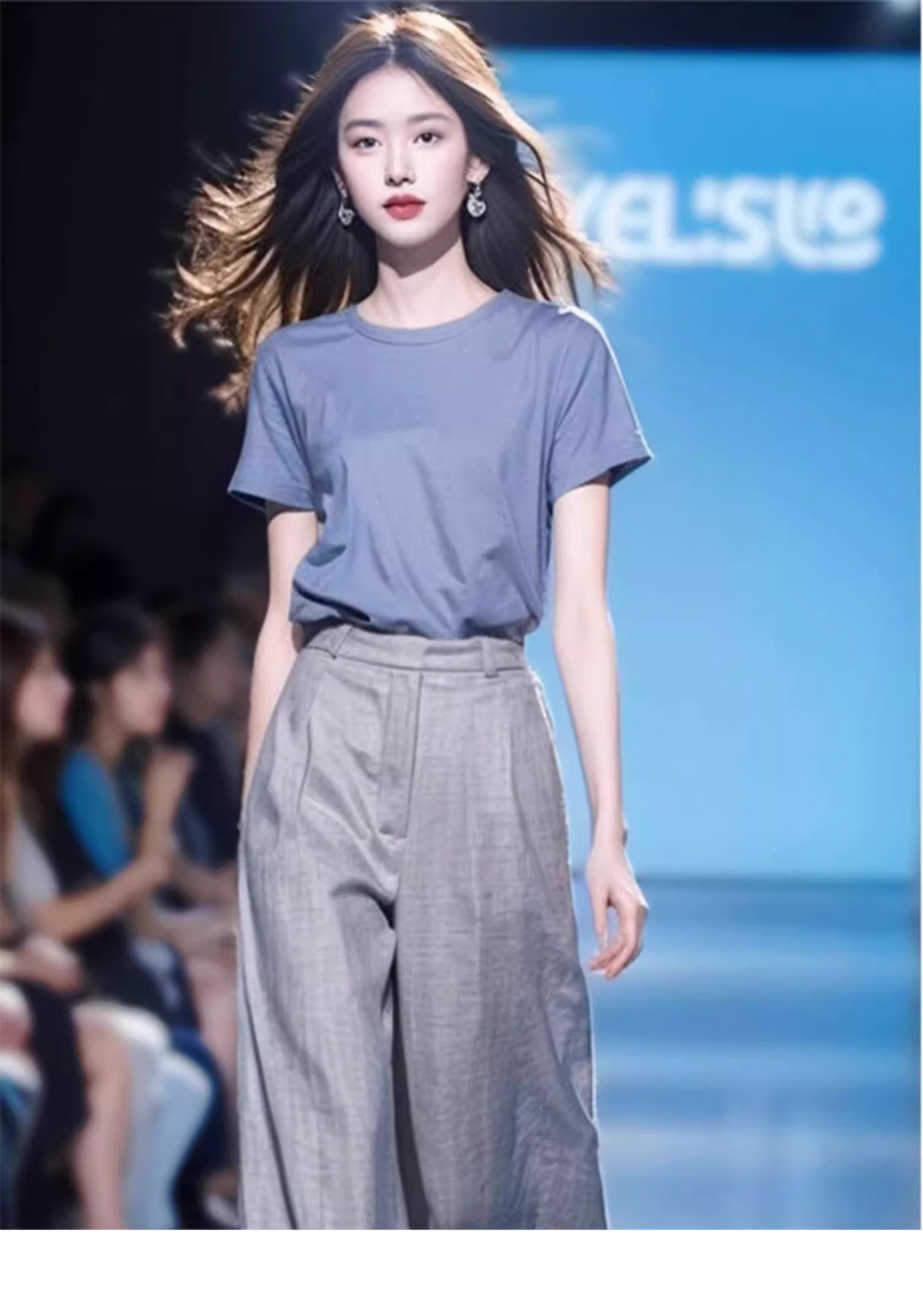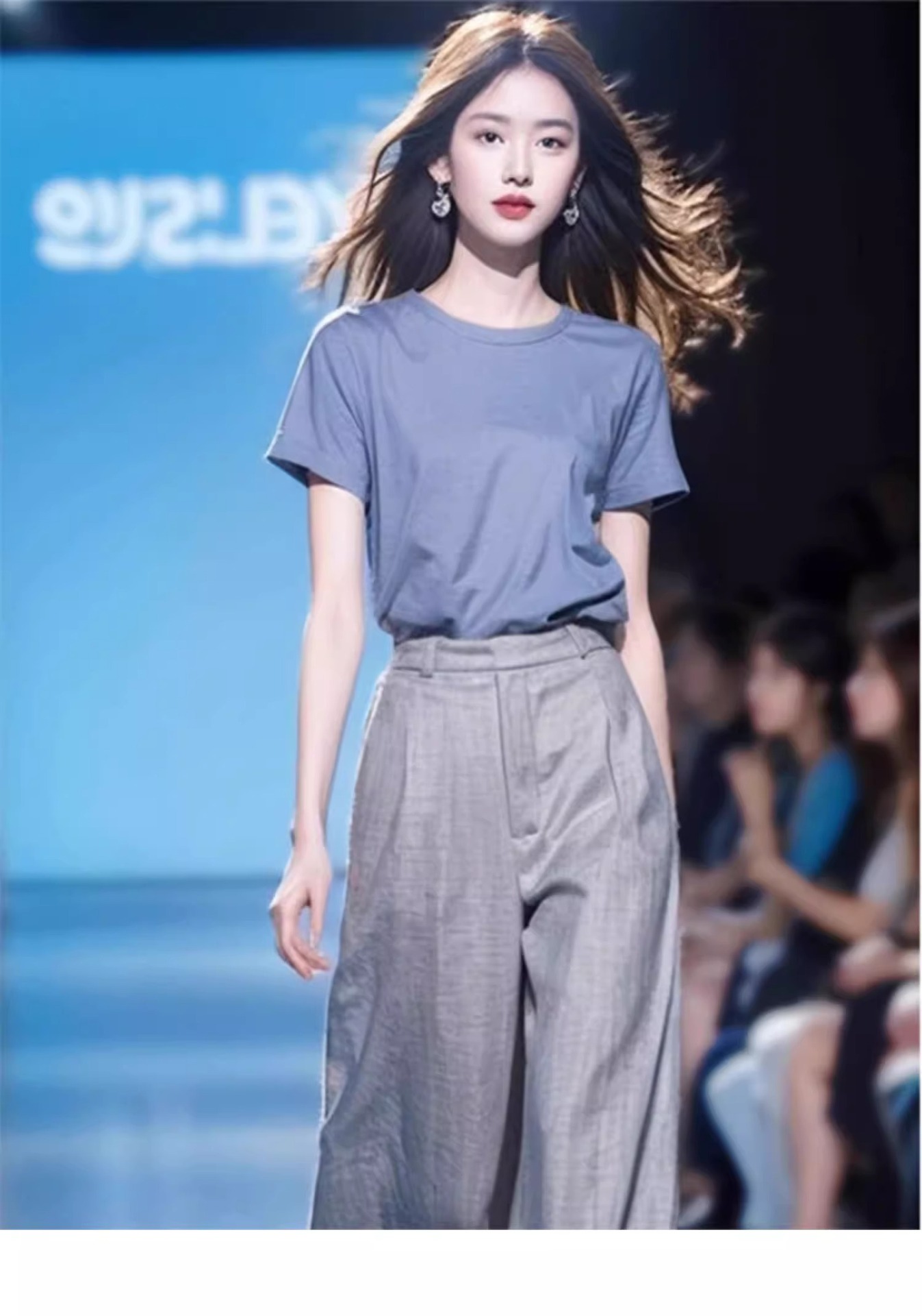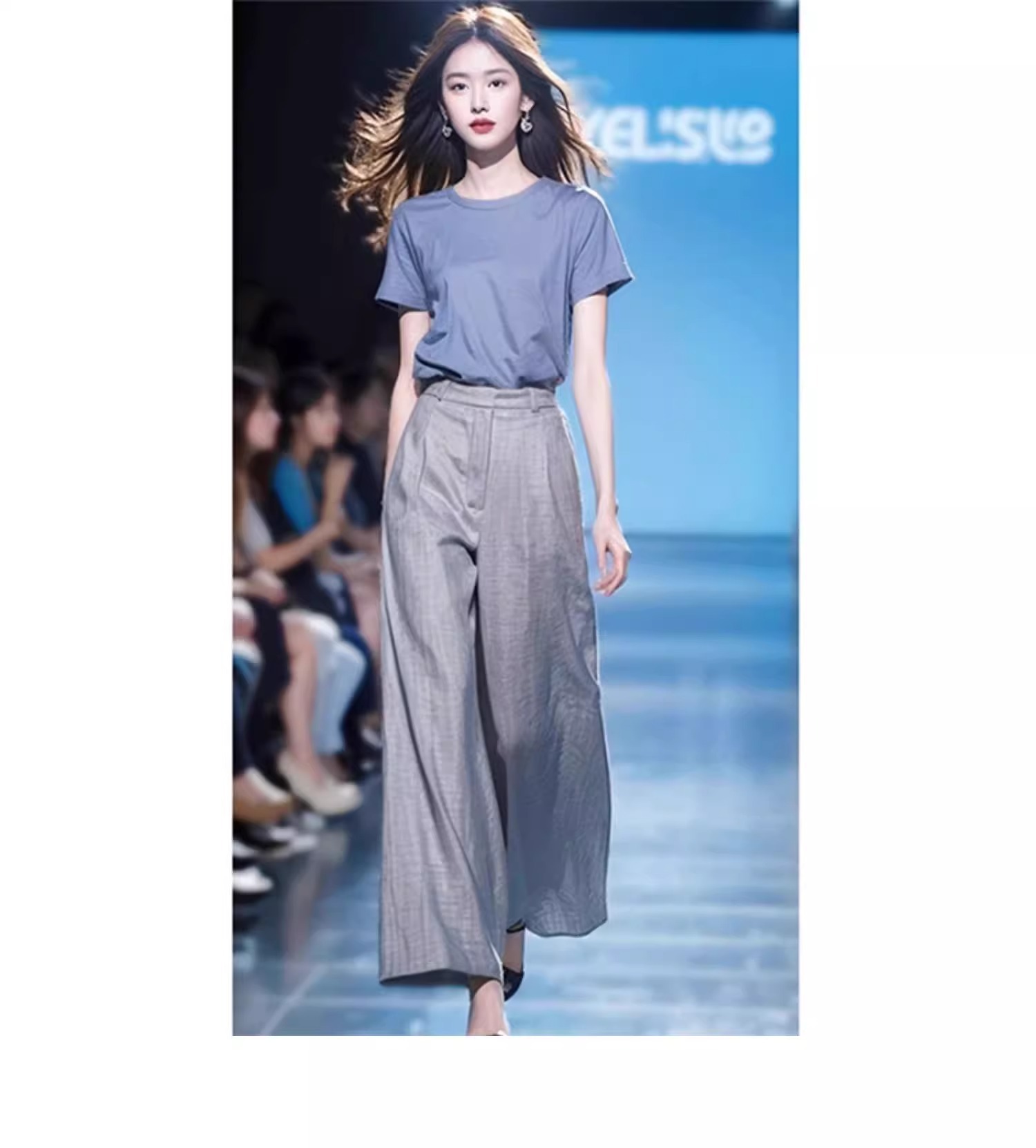 소금 스타일 라이트 성숙한 바람 A와 Sa 간단한 패션 서양식 시대 감소 블루 반팔 최고 캐주얼 세트 바지 여름 여성