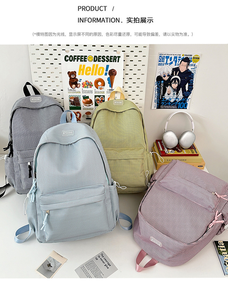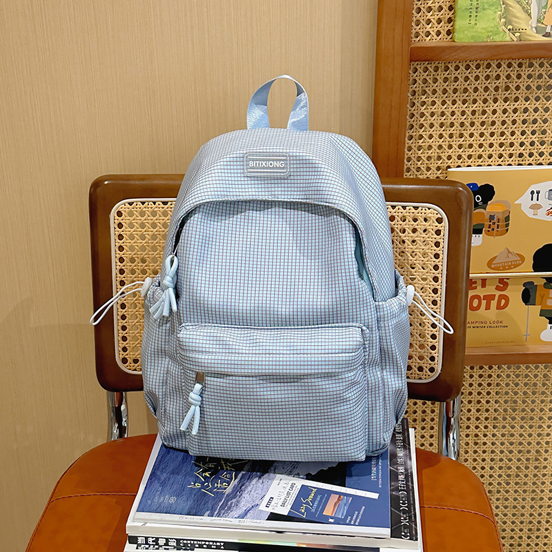 2025 봄 여름 스타일 작은 신선한 대학생 격자 무늬 학교 가방 경량 배낭 일본 ins 스타일 다용도 배낭스토어 가기