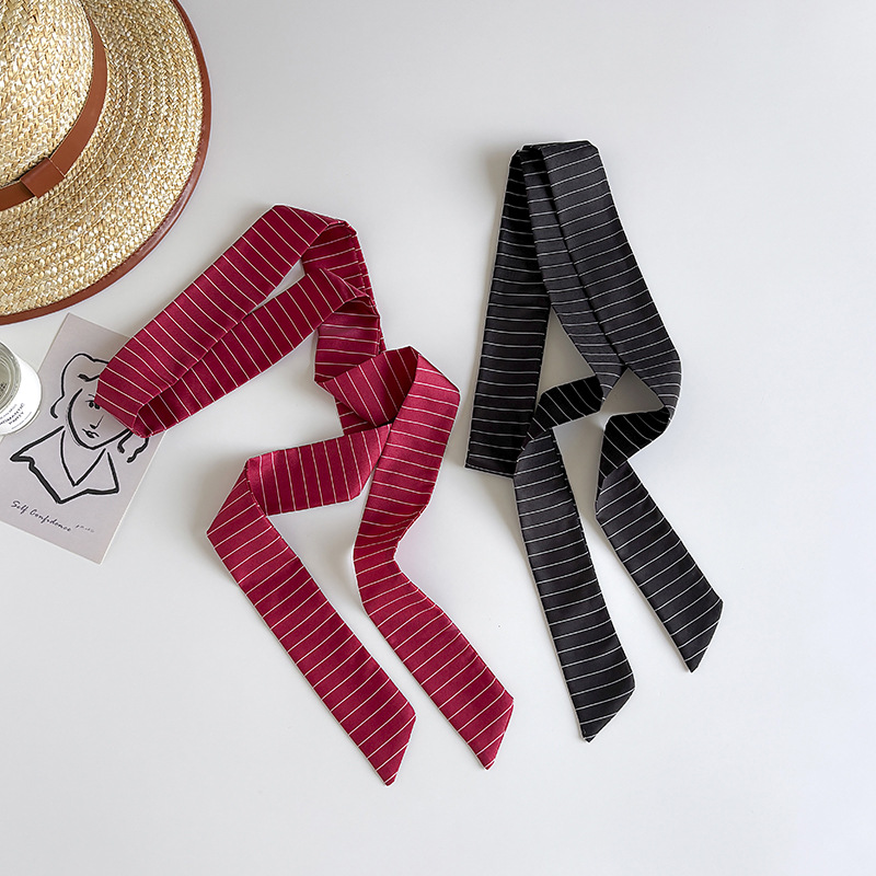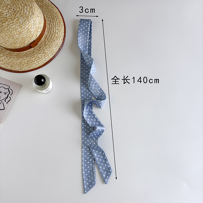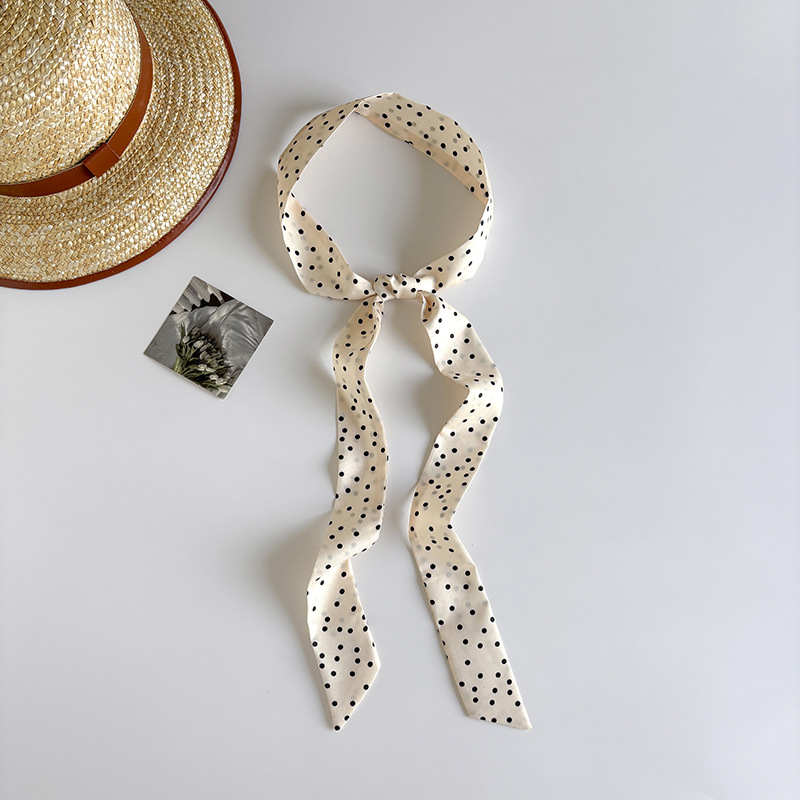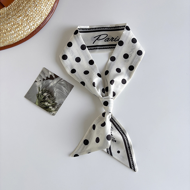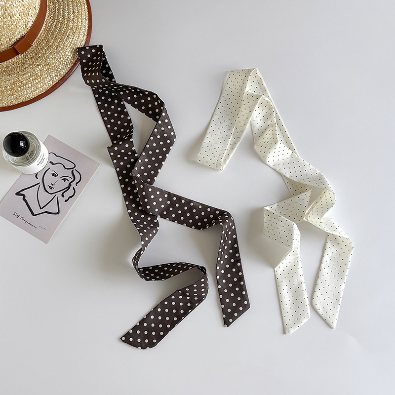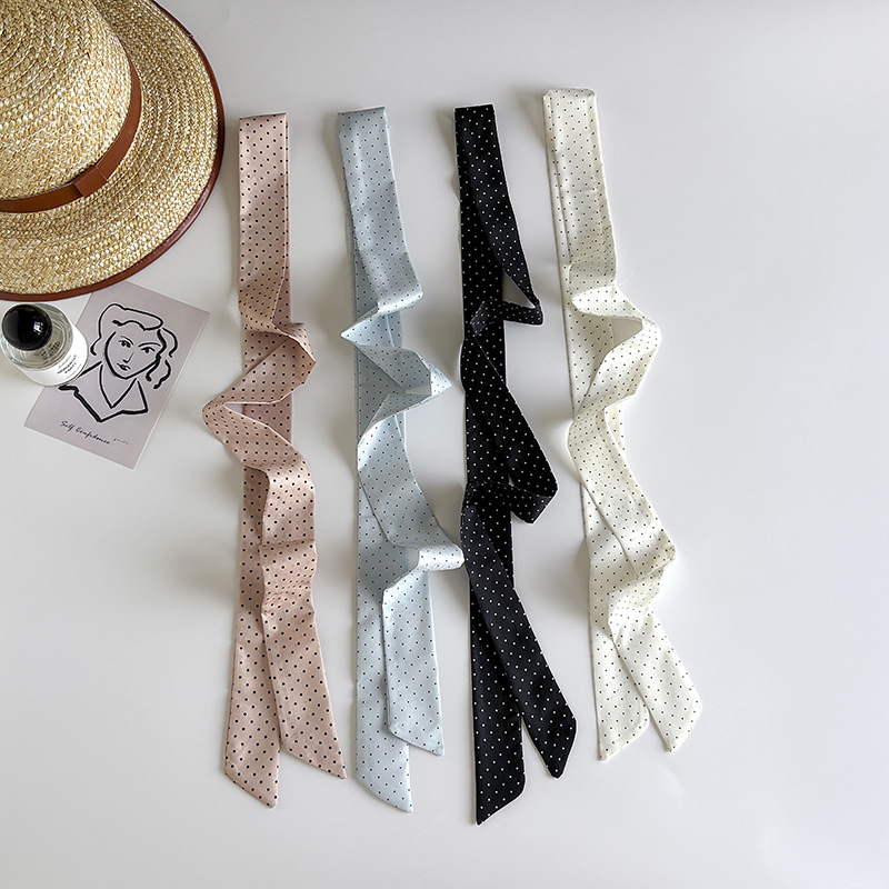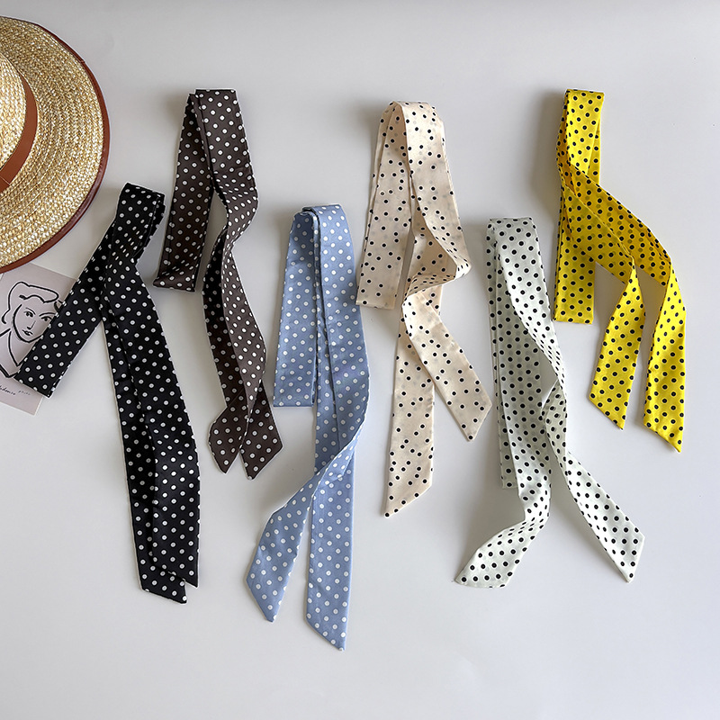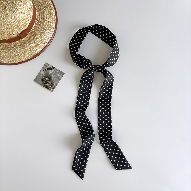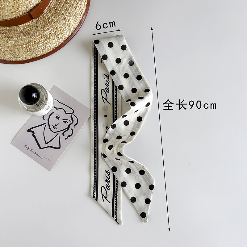 Ins 스타일 착용 액세서리 레트로 블랙 폴로 도트 롱 폴로 도트 실크 스카프 긴 스카프 패션 서양식 목 스카프스토어 가기