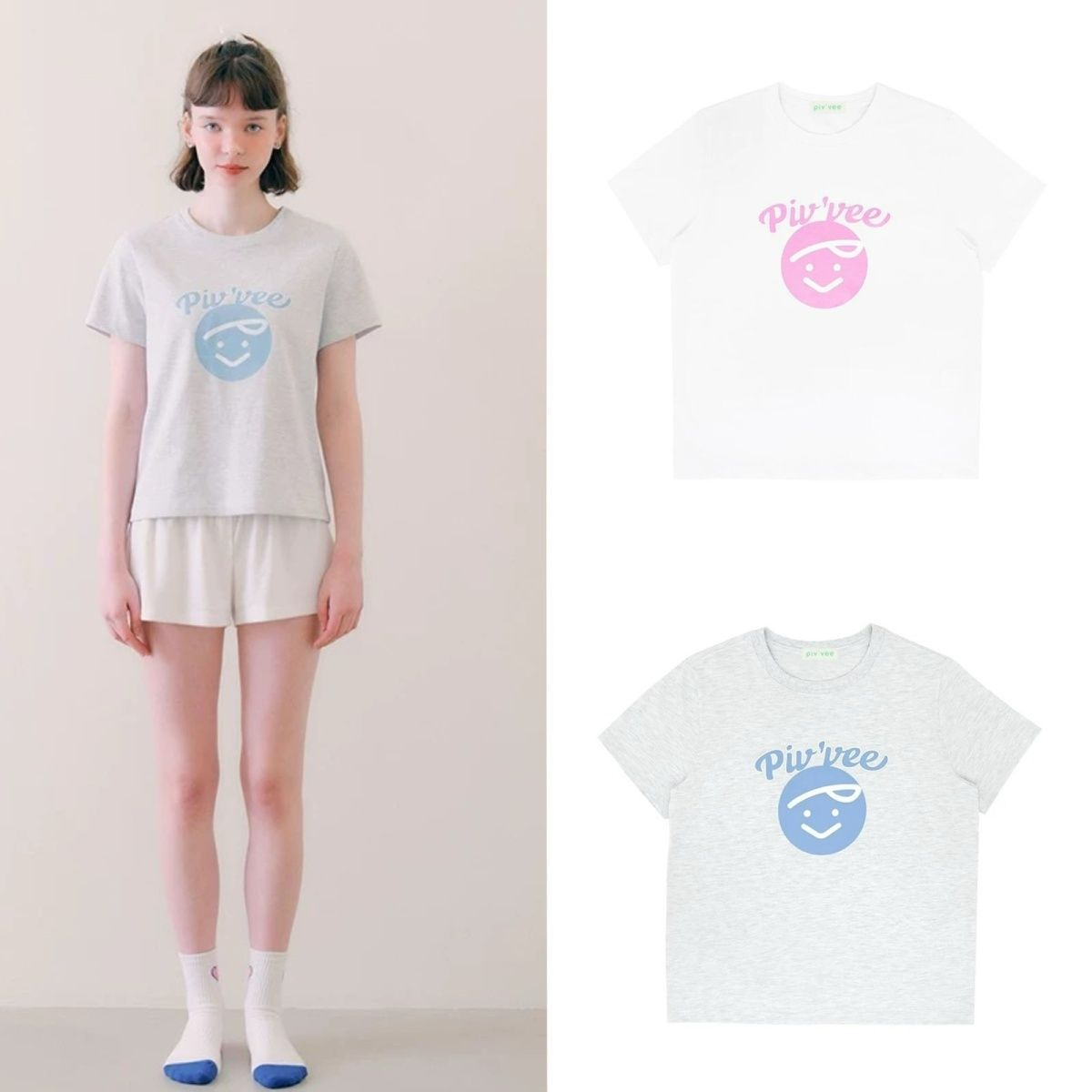 인기있는 여름 얇은 여성 골프웨어 라운드 넥 속건성 반팔 탑 웃는 얼굴 자수 트레이닝 슈트스토어 가기