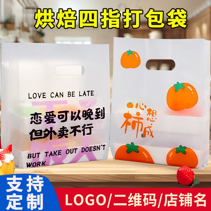베이킹 포장용 네 손가락 가방 맞춤형 테이크아웃 포장 플랫 플라스틱 가방 식품 등급 빵 토스트 디저트 휴대용 가방스토어 가기