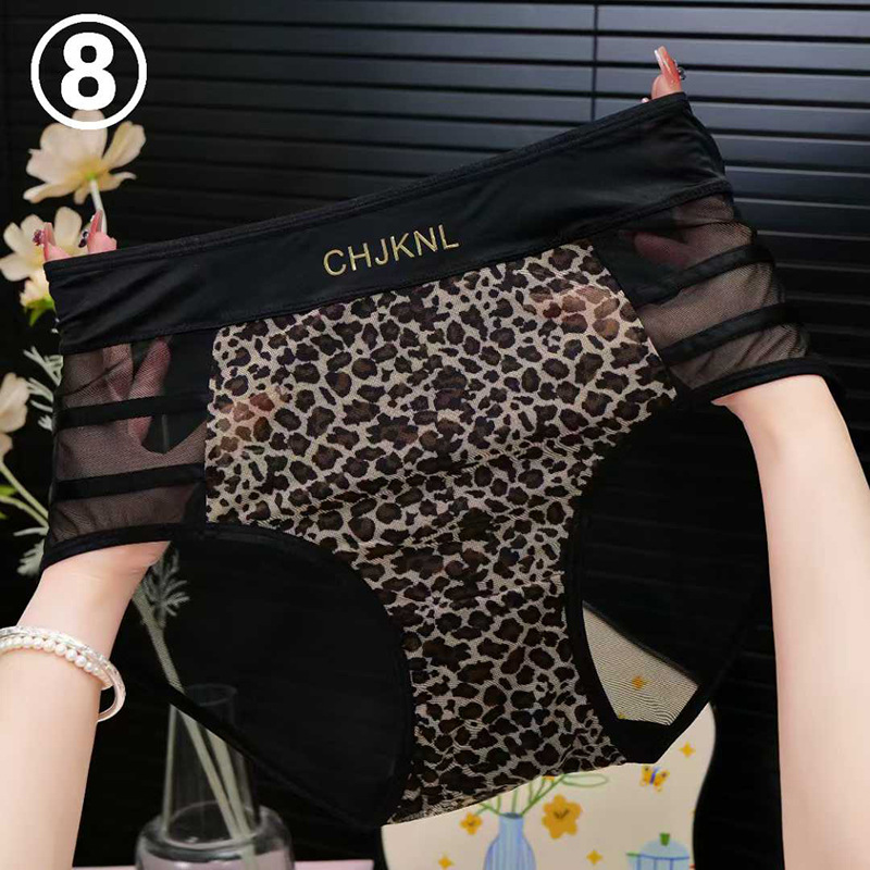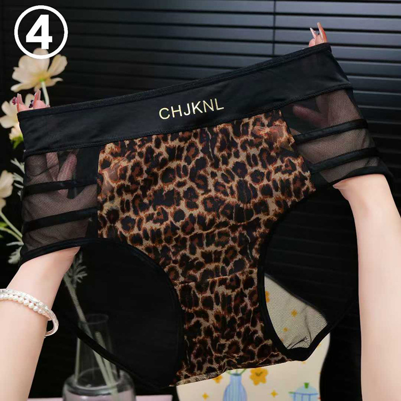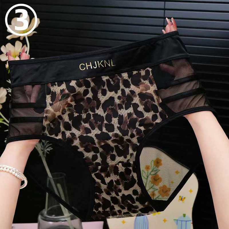 레오파드 프린트 메쉬 하이 웨이스트 팬티 여성용 실키 섹시한 레이스 투명 핫 팬티 보우 소녀 팬티스토어 가기