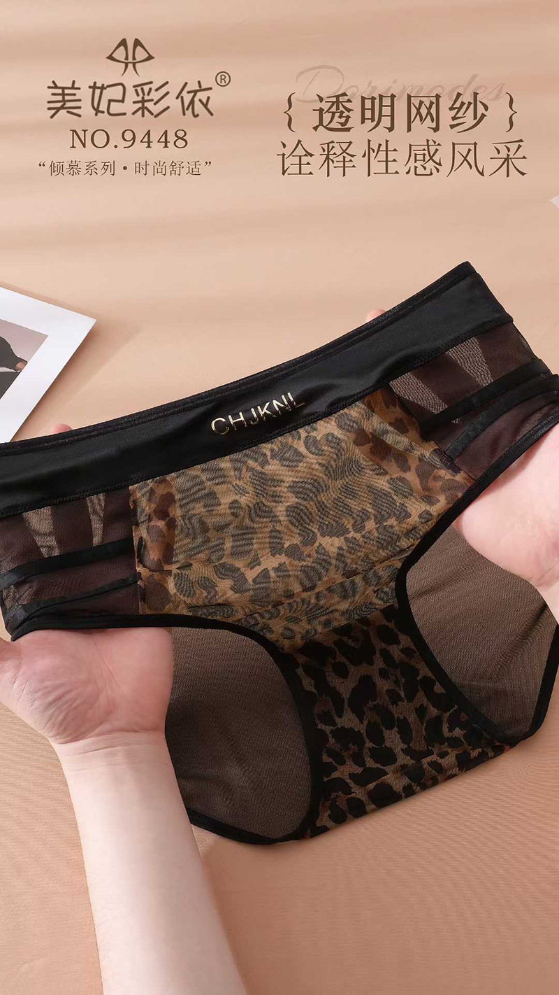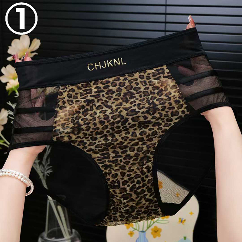 레오파드 프린트 메쉬 하이 웨이스트 팬티 여성용 실키 섹시한 레이스 투명 핫 팬티 보우 소녀 팬티