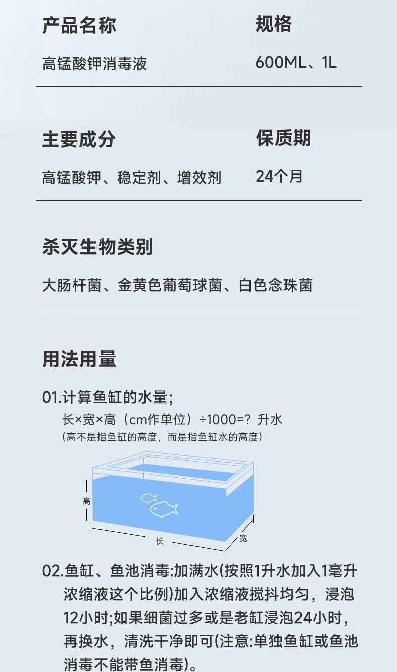 [국경 간 직송] 과망간산 칼륨 살균 용액 분말 거북이 상자 수족관 물고기 연못 정수기