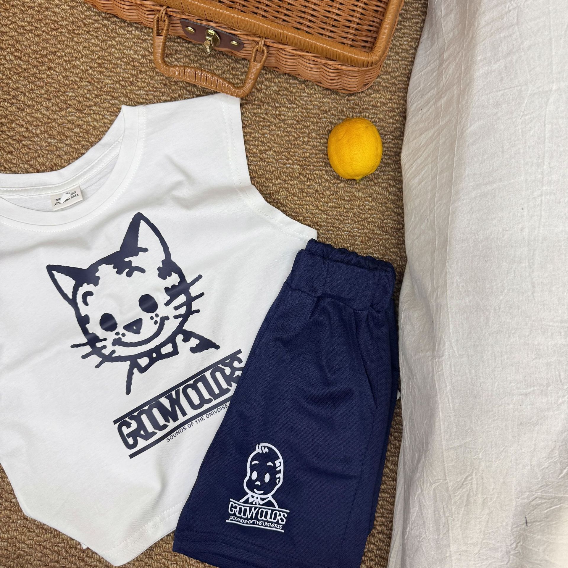 면 어린이 민소매 티셔츠 여름 2025 새로운 캐주얼 만화 애니메이션 조끼 소년 및 어린이 톱 재고스토어 가기