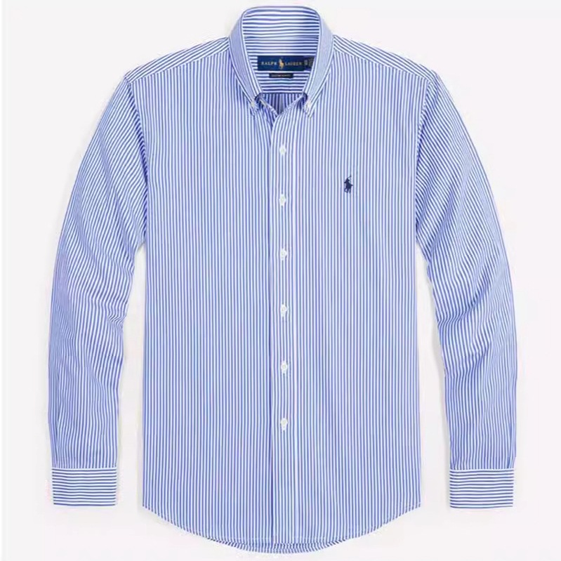 RL 러프 포니 로고 라펠 티셔츠 크로스보더 남성용 폴로 스트라이프 긴팔 셔츠 남성용 자수 코튼 재고 있음스토어 가기