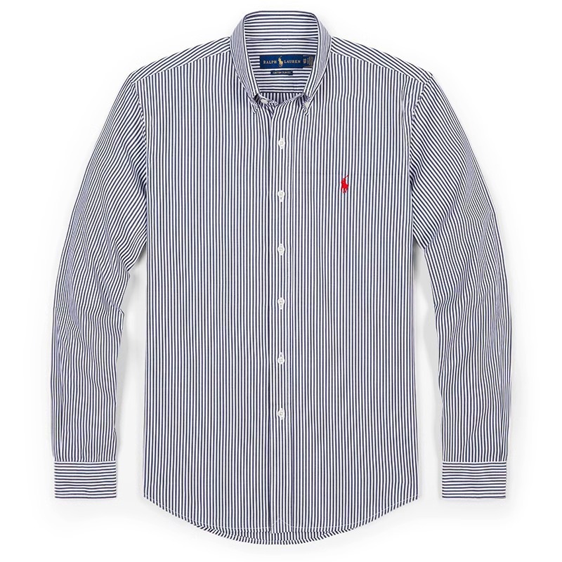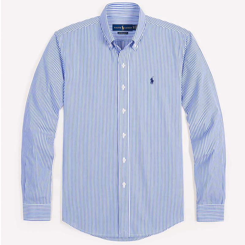 RL 러프 포니 로고 라펠 티셔츠 크로스보더 남성용 폴로 스트라이프 긴팔 셔츠 남성용 자수 코튼 재고 있음