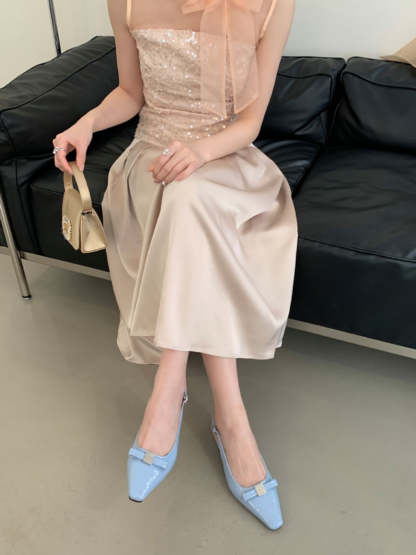 한국 스타일 샤넬 스타일 두꺼운 힐 신발 여성 2025 봄 새 여름 소프트 솔 샌들 작업 신발 우아한 이브닝 슈즈스토어 가기