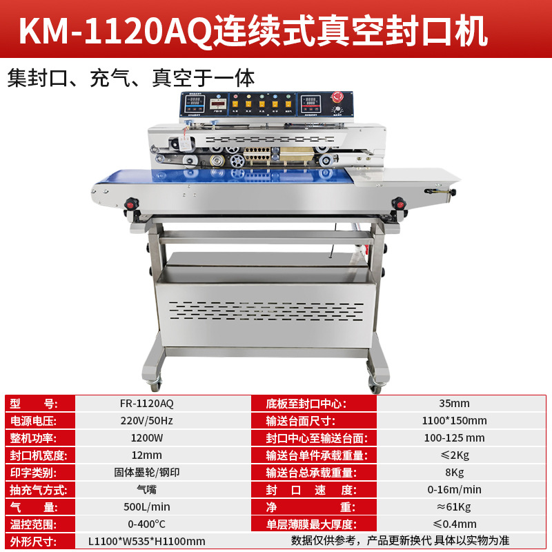 • KM-1120AQ 연속 진공 밀봉 기계*는 밀봉, 팽창 및 진공을 하나로 통합합니다.