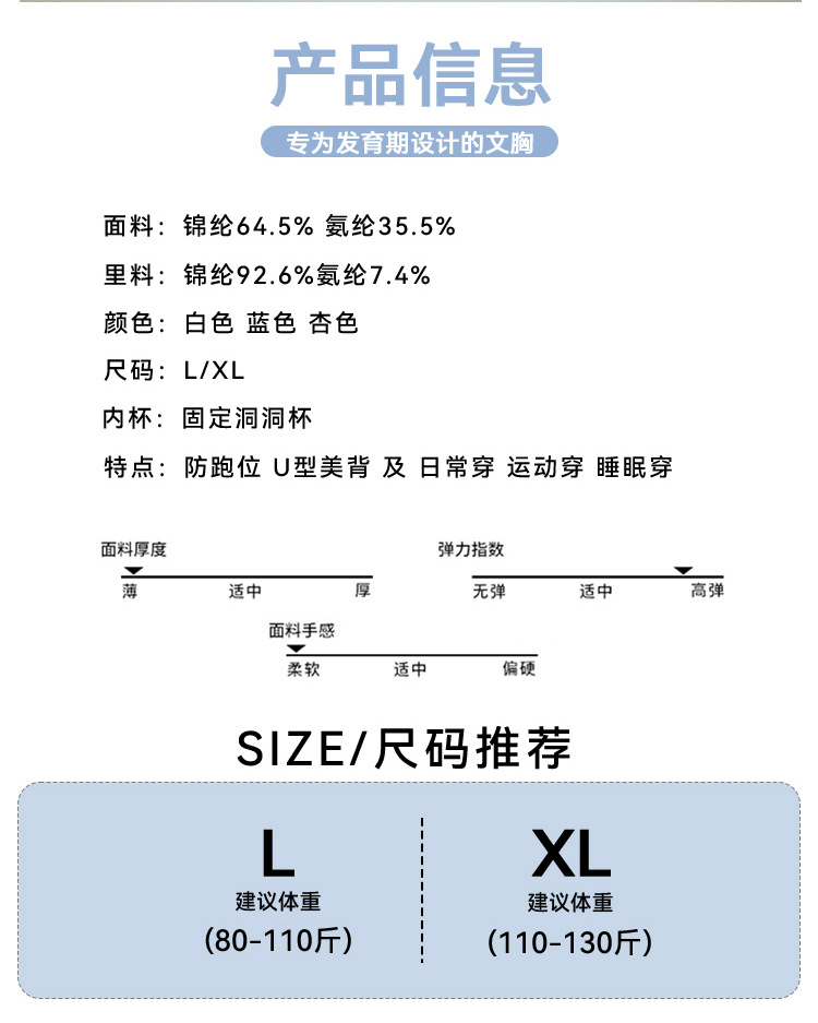 여자 속옷 중학생 스포츠 여성 청소년 통기성 학생 개발 조끼 아름다운 뒷브래지어스토어 가기