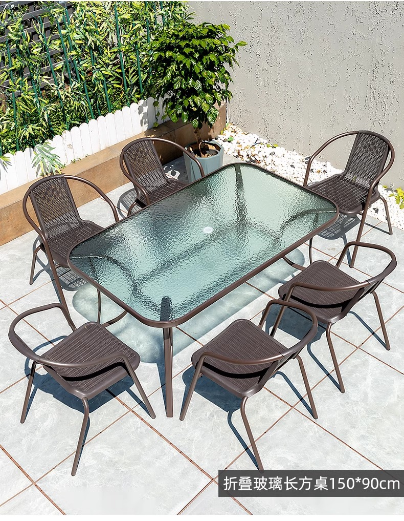 야외 안뜰 테이블 및 의자 등나무 의자 우산 조합 빌라 정원 테라스 발코니 커피 테이블 식탁 및 의자를 갖춘 레저 접이식 테이블