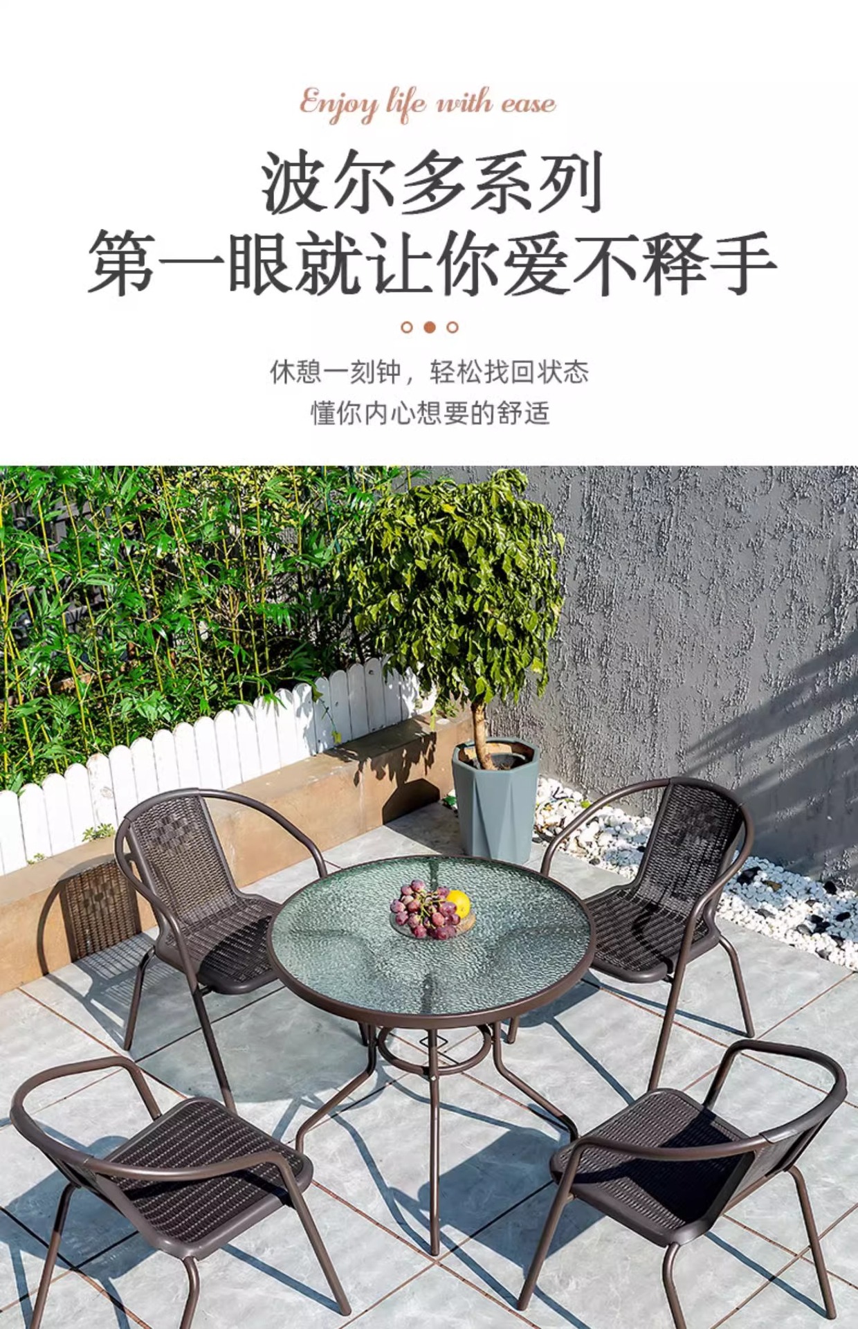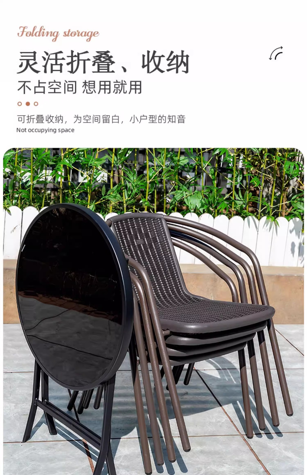 야외 안뜰 테이블 및 의자 등나무 의자 우산 조합 빌라 정원 테라스 발코니 커피 테이블 식탁 및 의자를 갖춘 레저 접이식 테이블스토어 가기