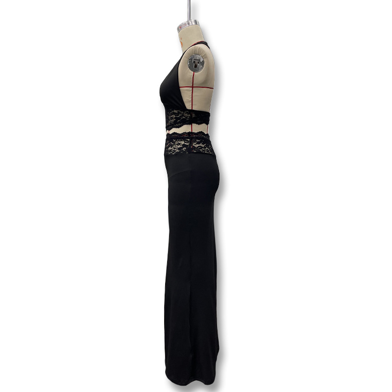 국경 2025 봄과 여름 새로운 섹시한 목 백리스 레이스 스트랩 높은 허리 엉덩이 스커트 패션 세트 여성스토어 가기