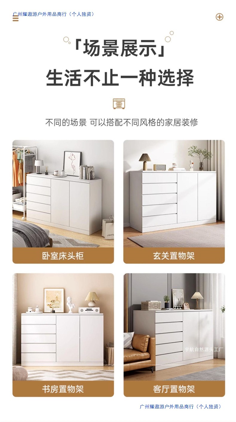 • [서랍 6개] 웜화이트 120*40*71CM (서랍장 2개, 서랍장 3개)