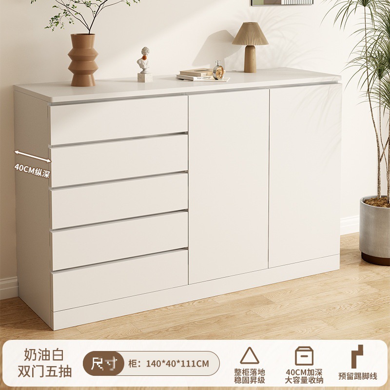 • [더블 도어 5단 서랍 확장 모델] 웜 화이트 140*40*111CM