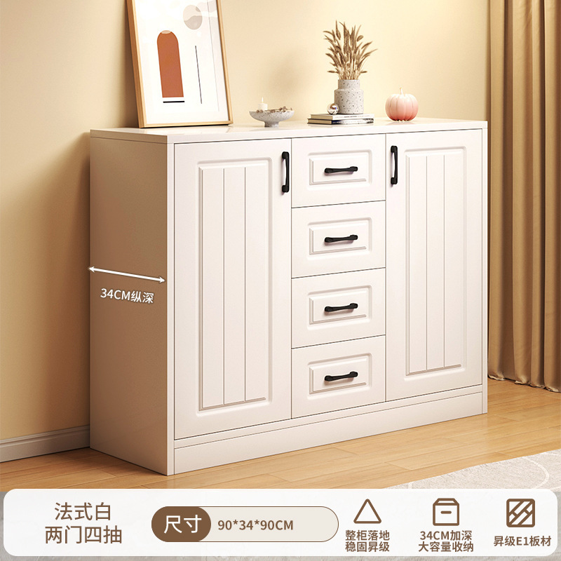 • [업그레이드된 E1 플레이트] [우아한 프렌치 화이트] [도어 2개, 서랍 4개] 90*38*74CM