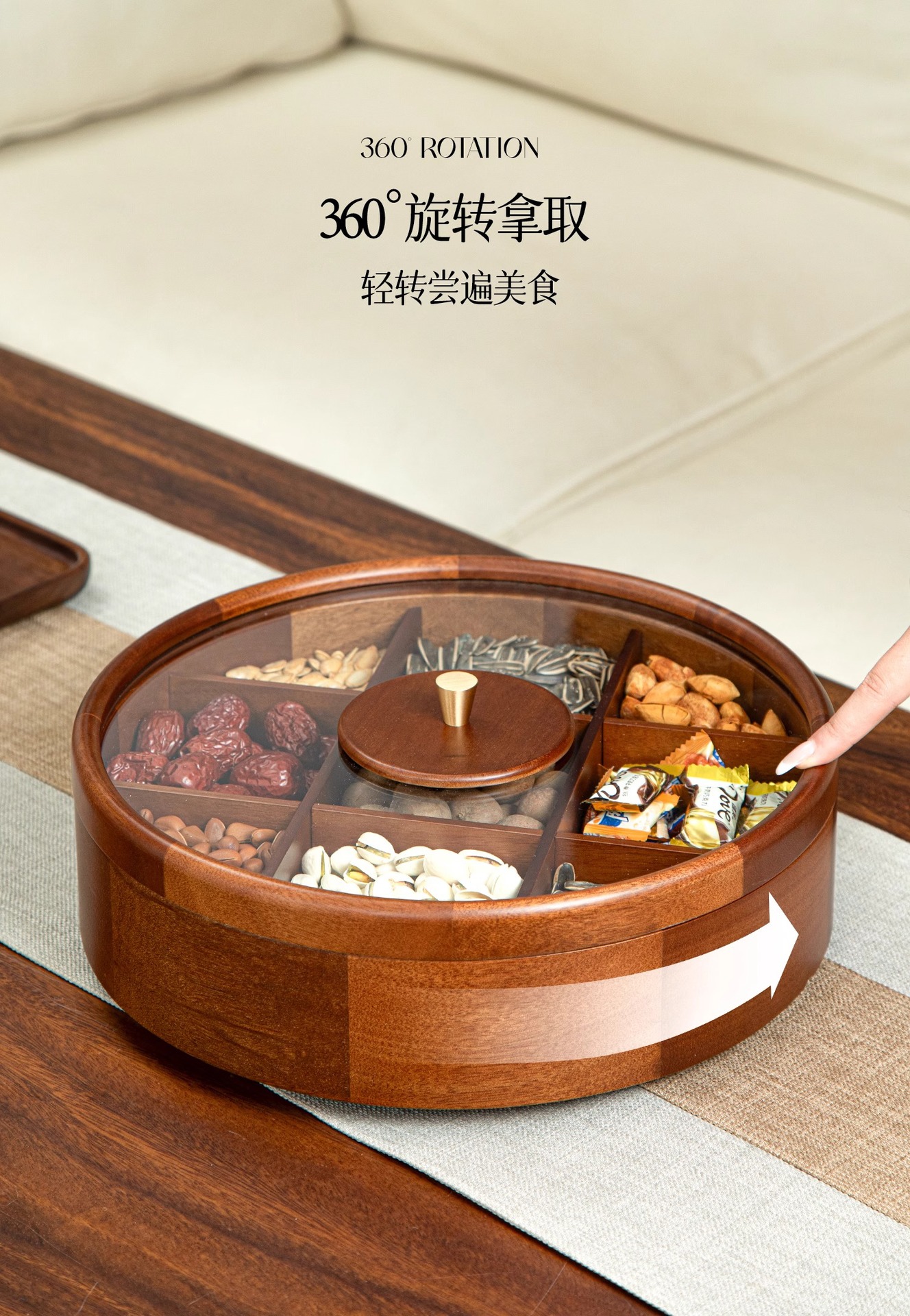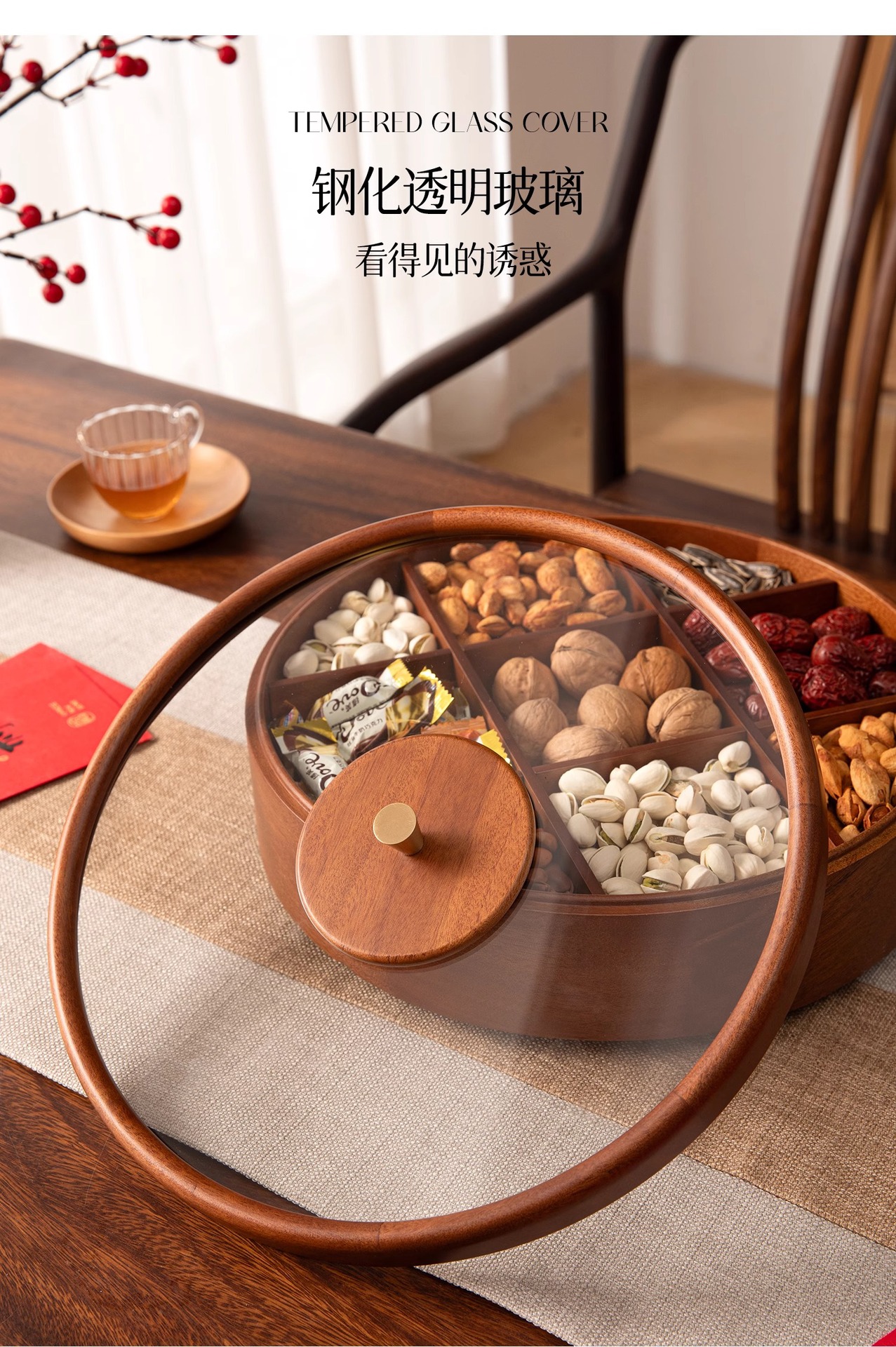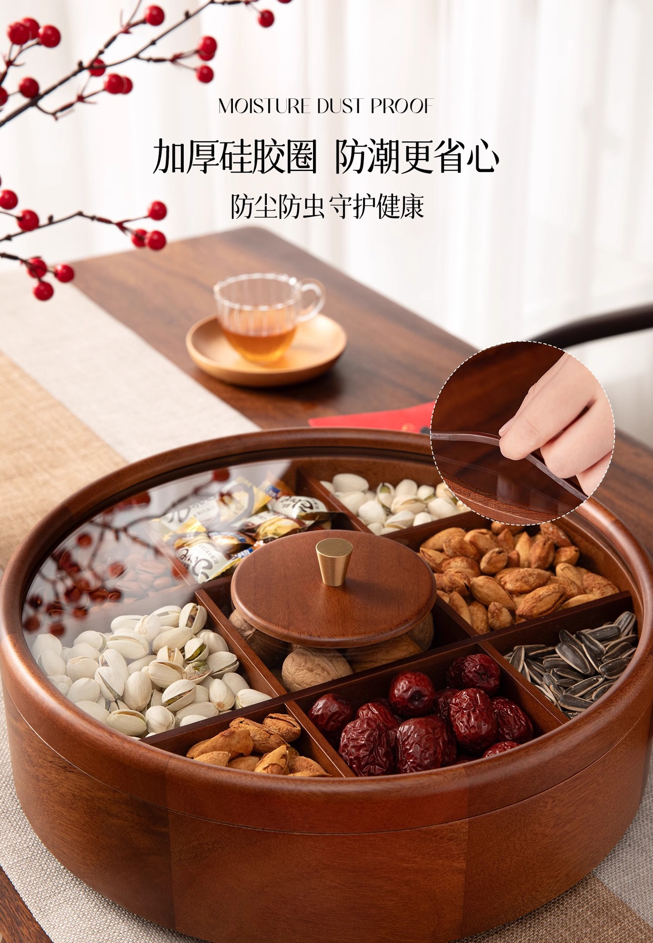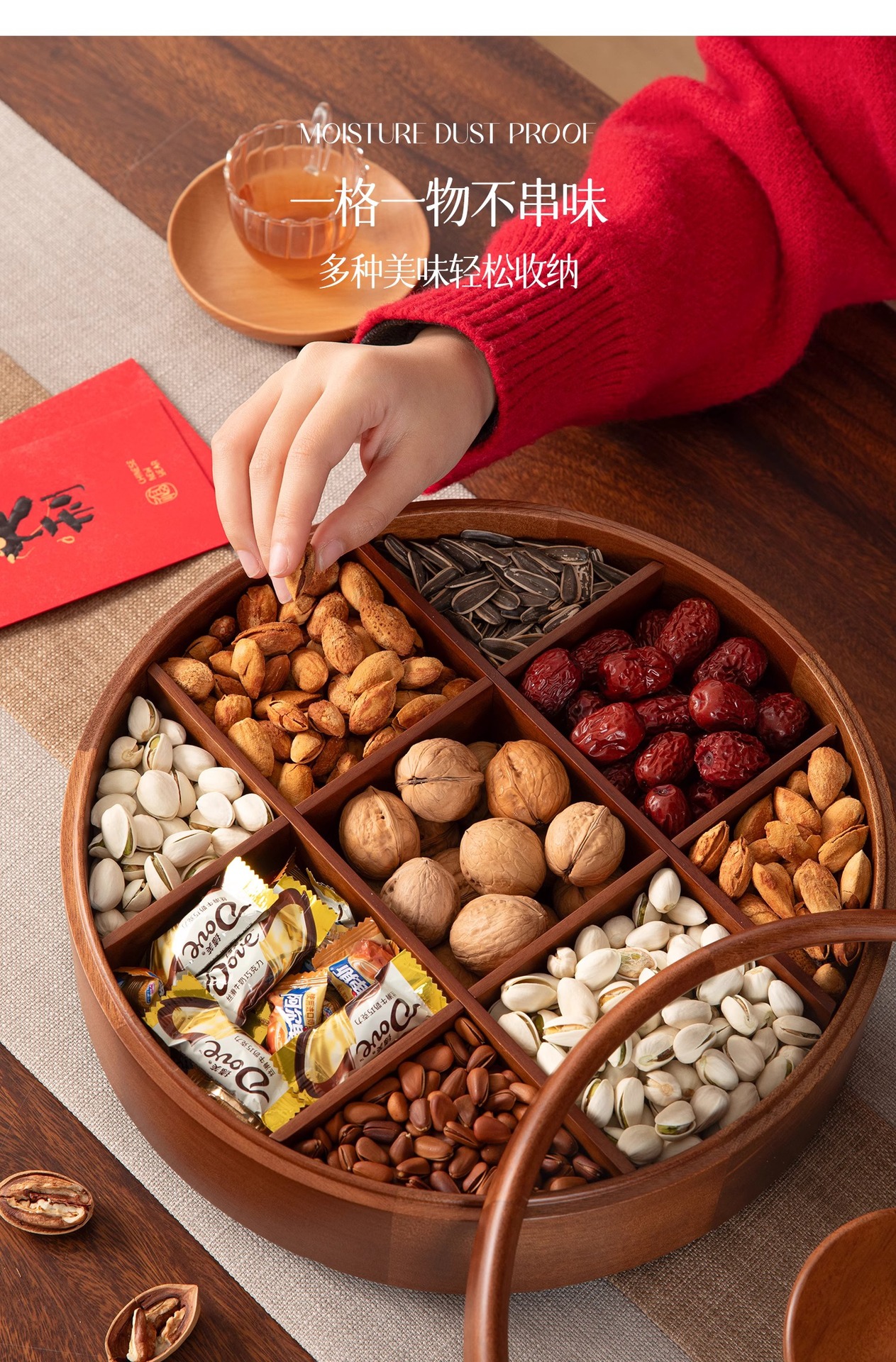 가정용 말린 과일 스낵 과일 접시, 오르가움 나무 원형 고급 클래식 새로운 중국 스타일의 Jiugongge 과일 접시 상자스토어 가기