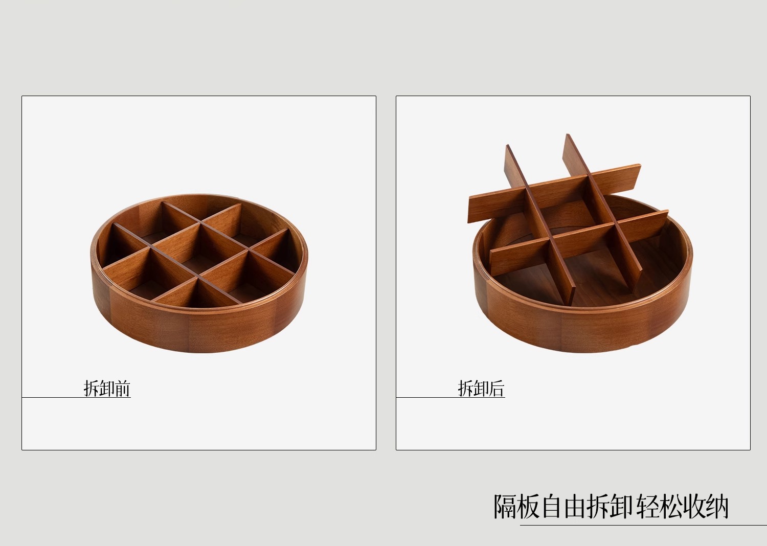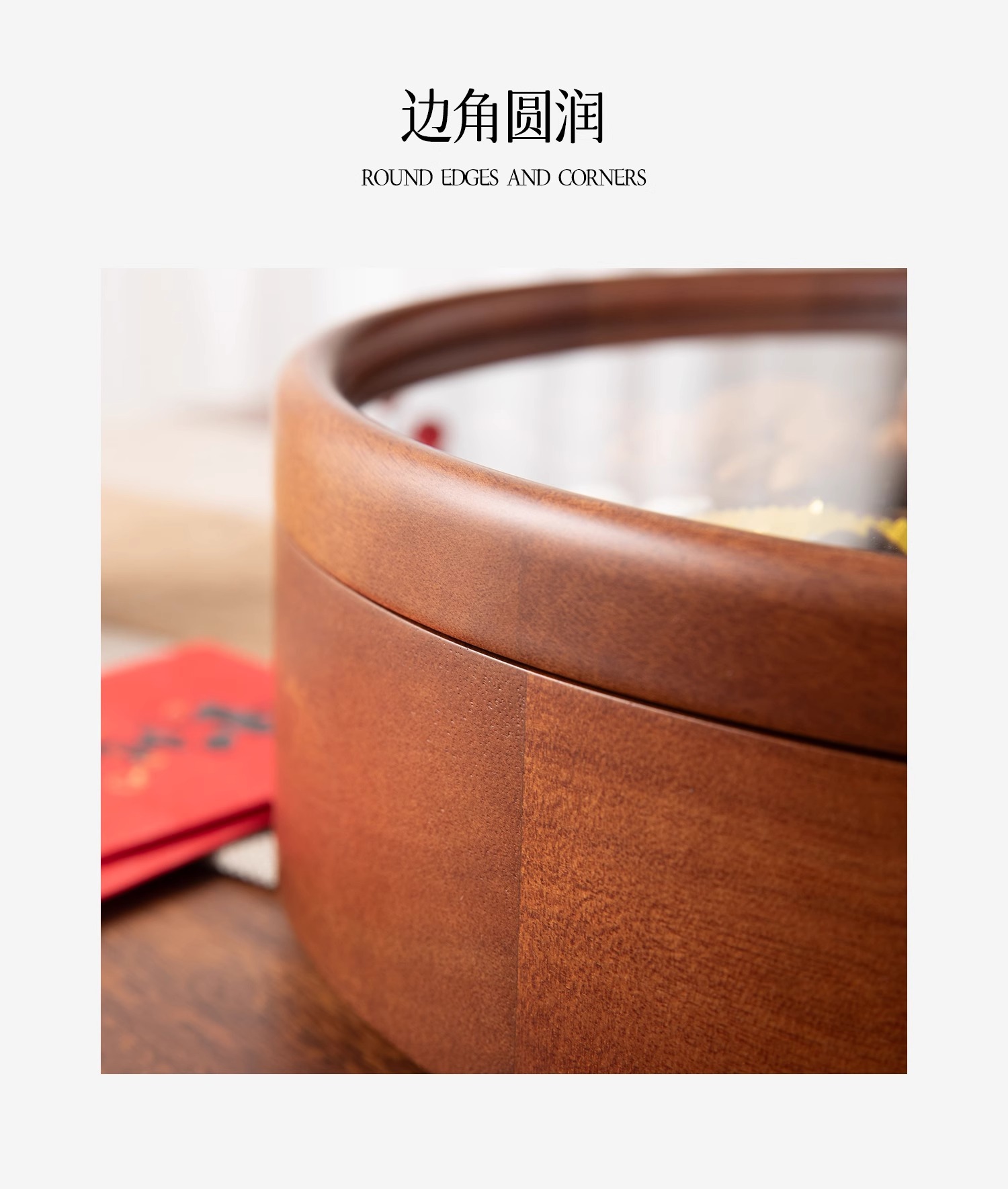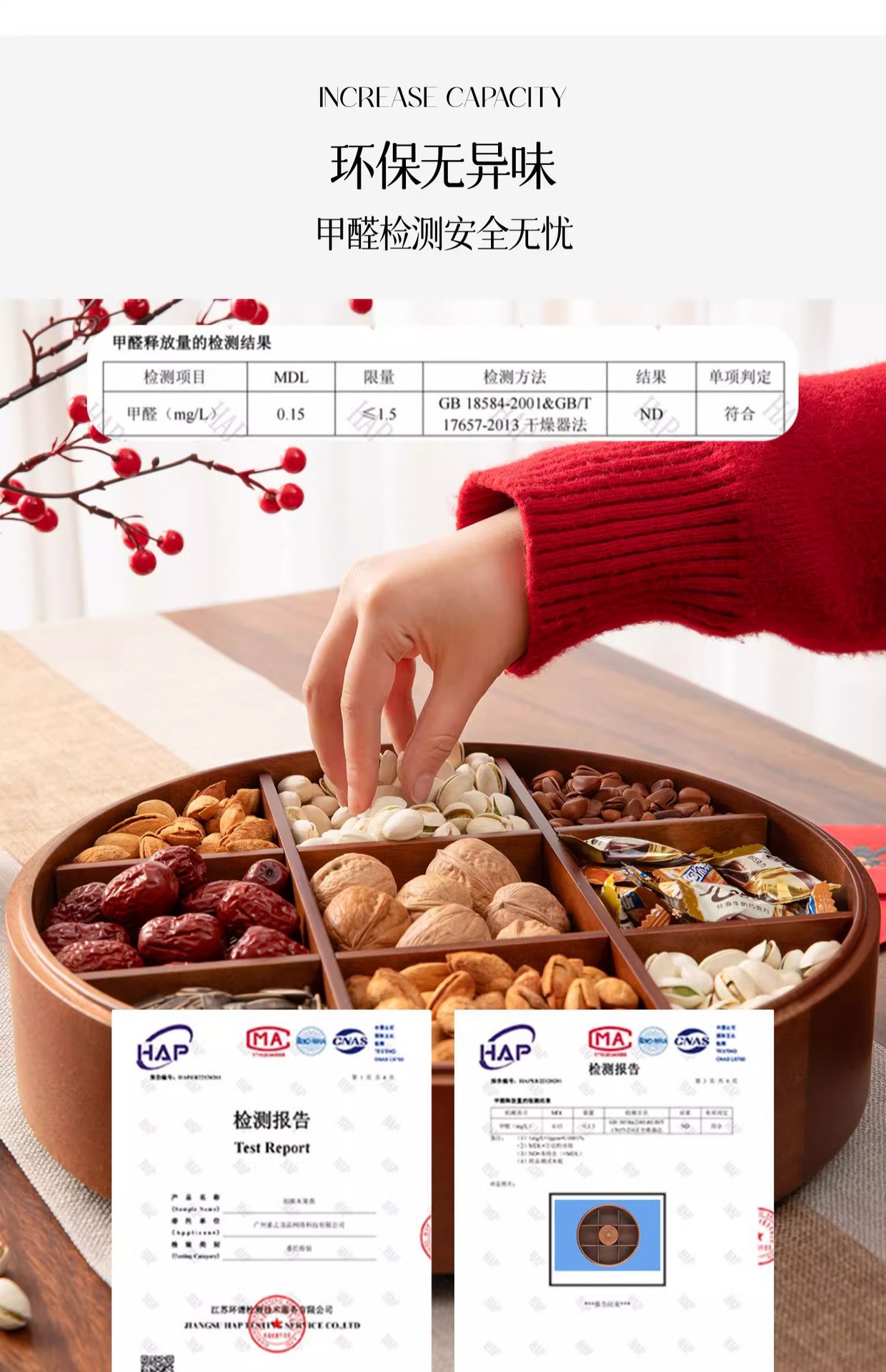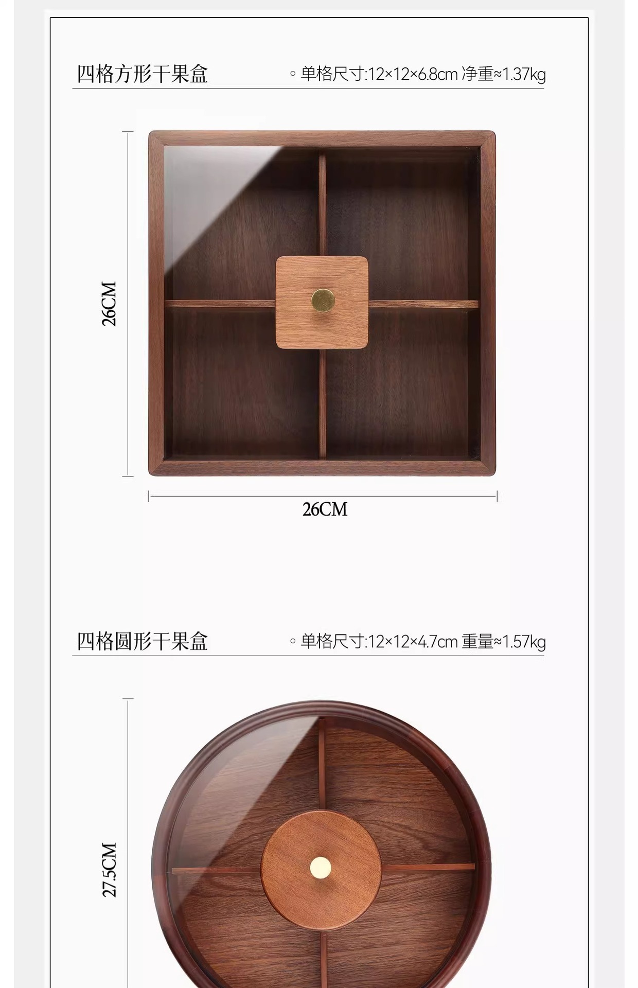 가정용 말린 과일 스낵 과일 접시, 오르가움 나무 원형 고급 클래식 새로운 중국 스타일의 Jiugongge 과일 접시 상자스토어 가기