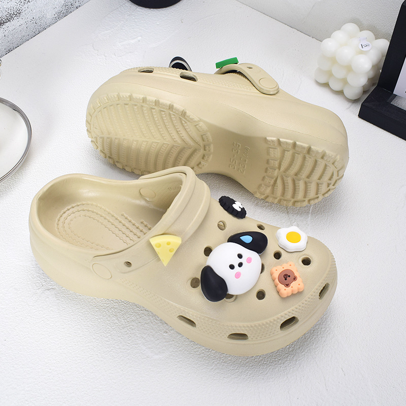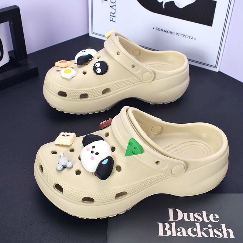 여름철 여성을 위한 새로운 스타일의 나막신, 똥 밟는 느낌의 미끄럼 방지 슬리퍼, 중공 내마모성, 탈취제, 두꺼운 밑창 발가락 슬리퍼