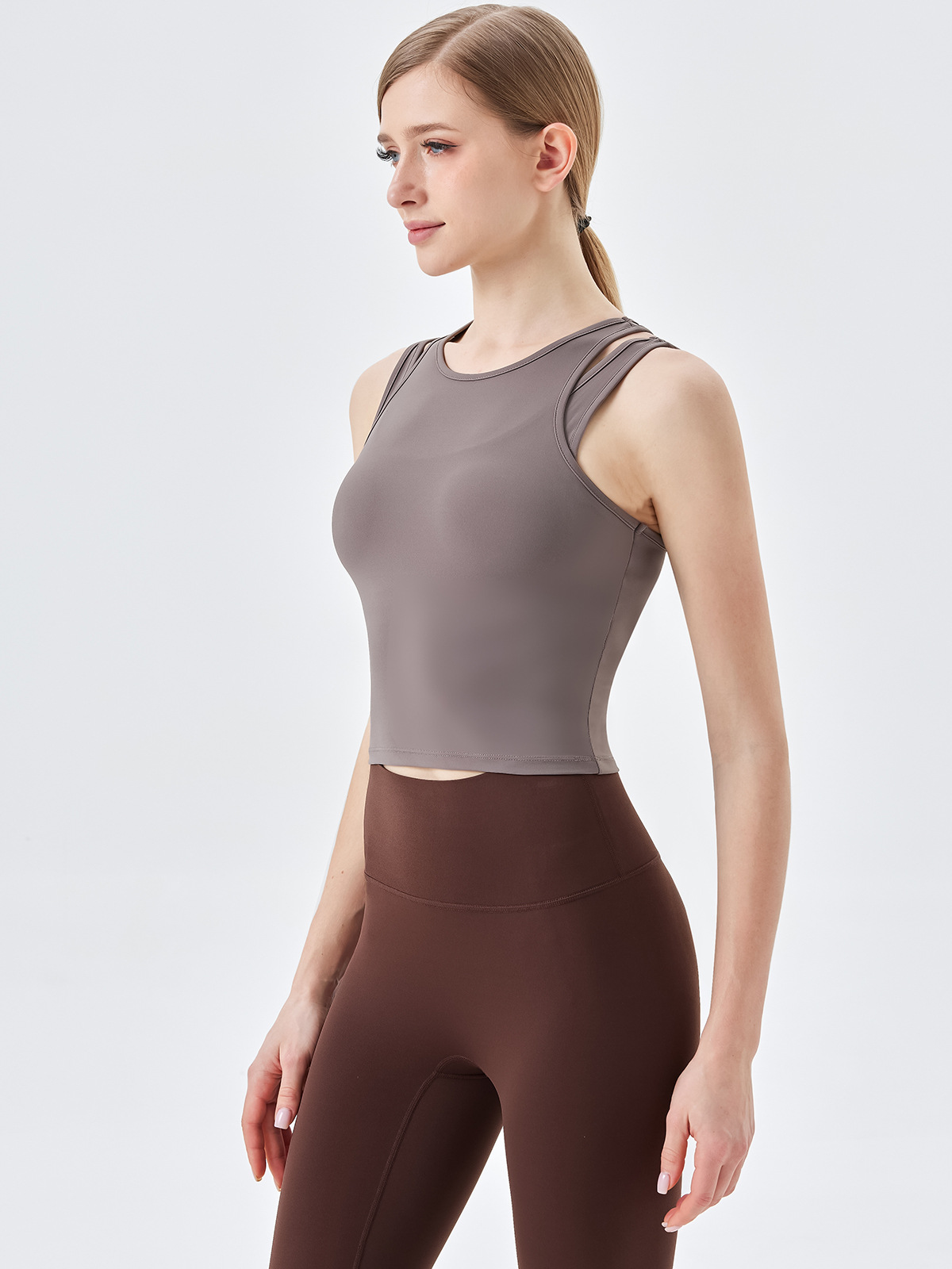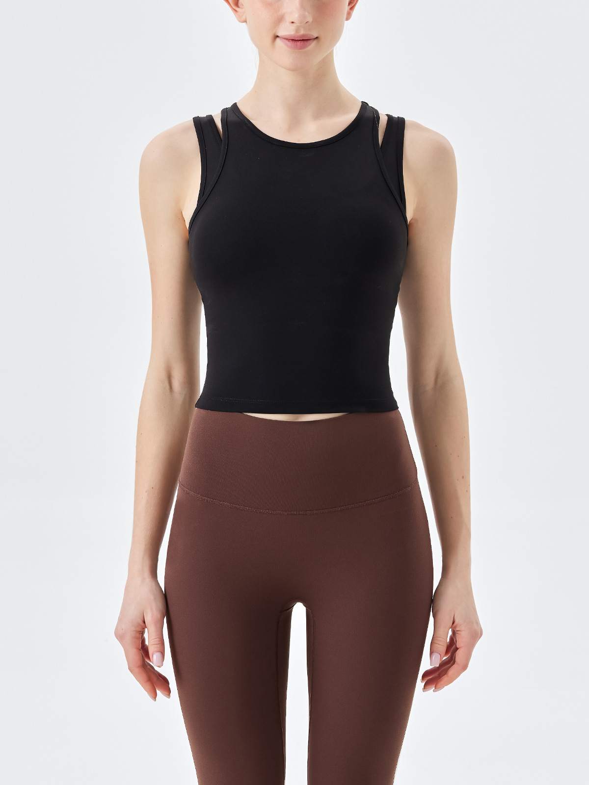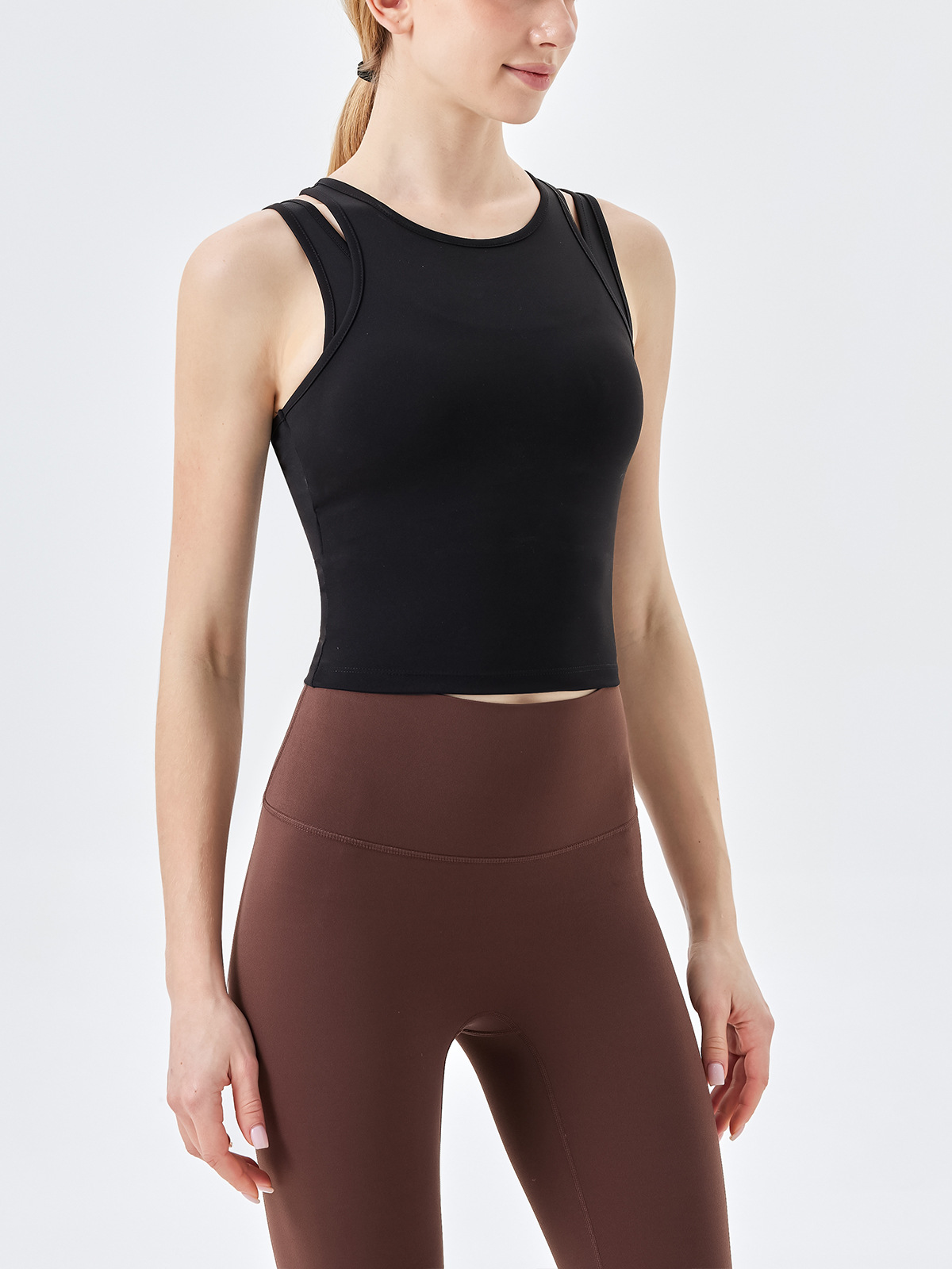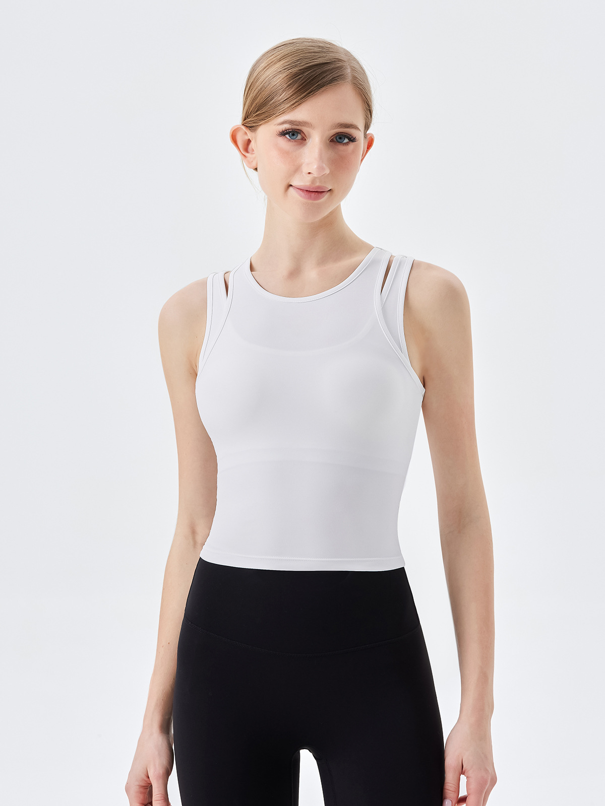 새로운 가짜 투피스 중형 스포츠 조끼 여성 전문 달리기 필라테스 요가 의류 충격 방지 요가 조끼 여성