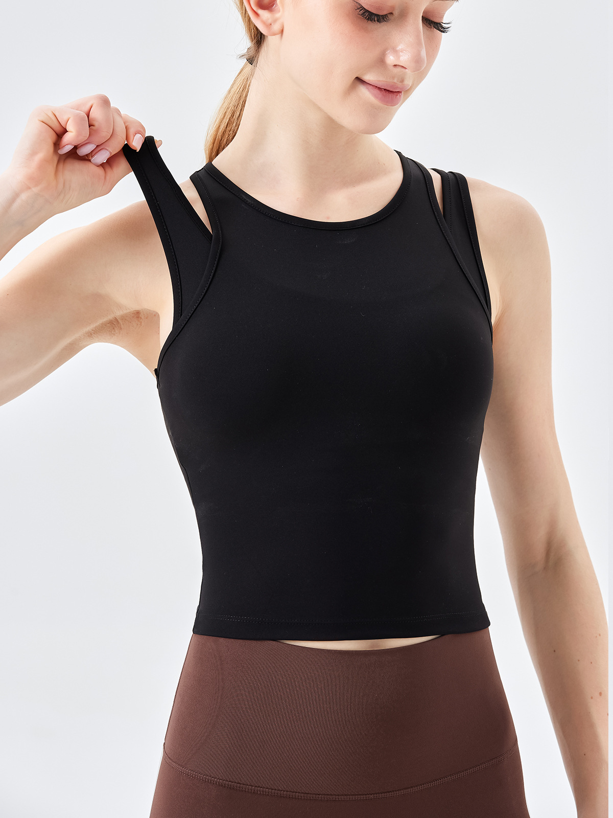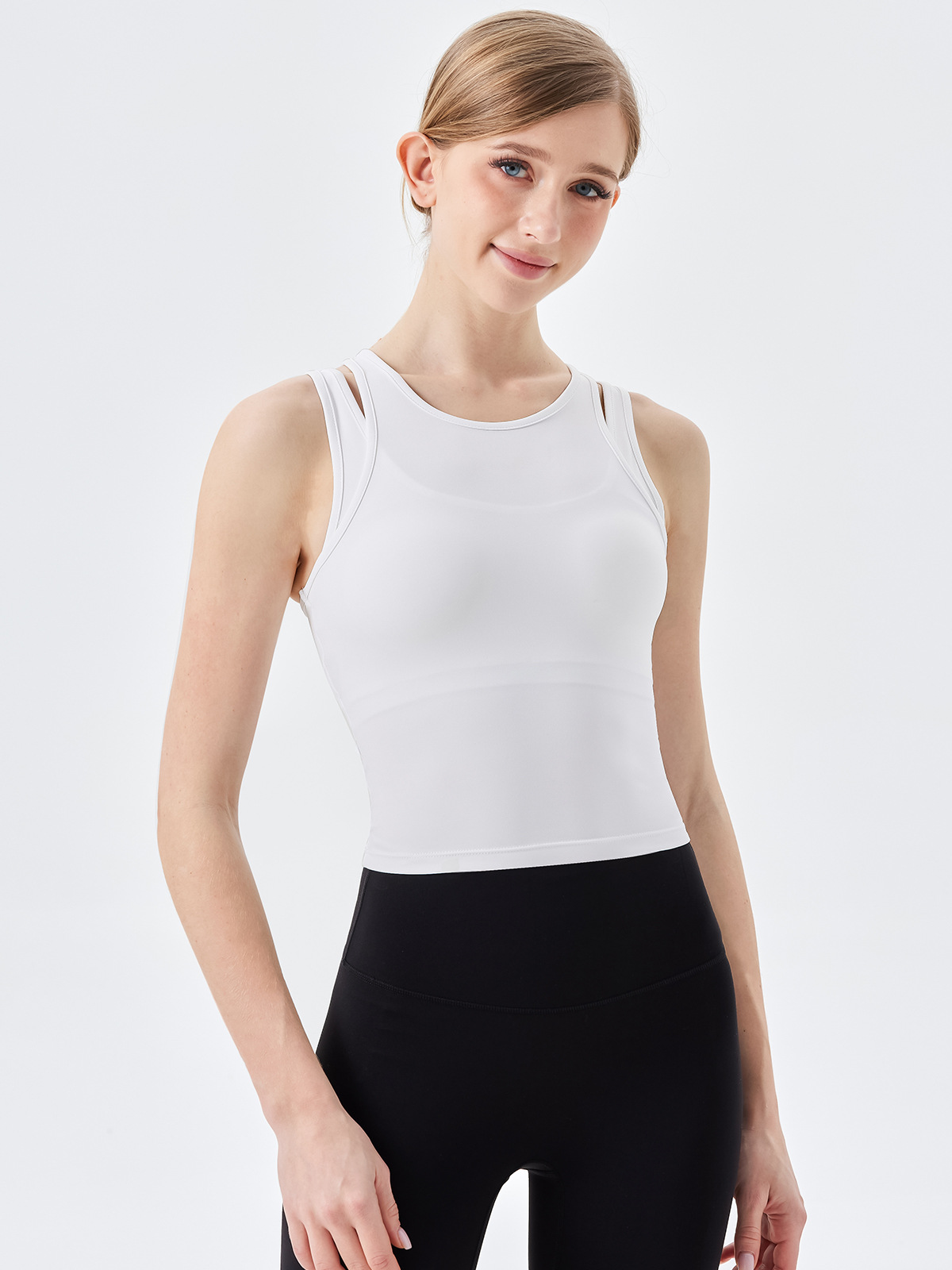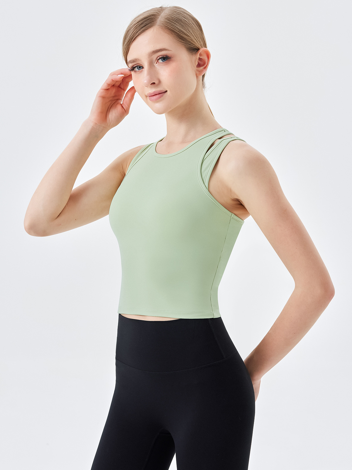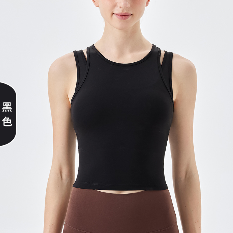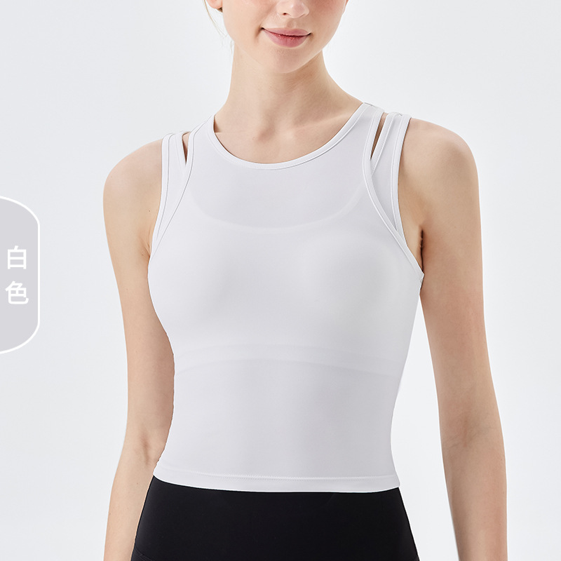 새로운 가짜 투피스 중형 스포츠 조끼 여성 전문 달리기 필라테스 요가 의류 충격 방지 요가 조끼 여성스토어 가기