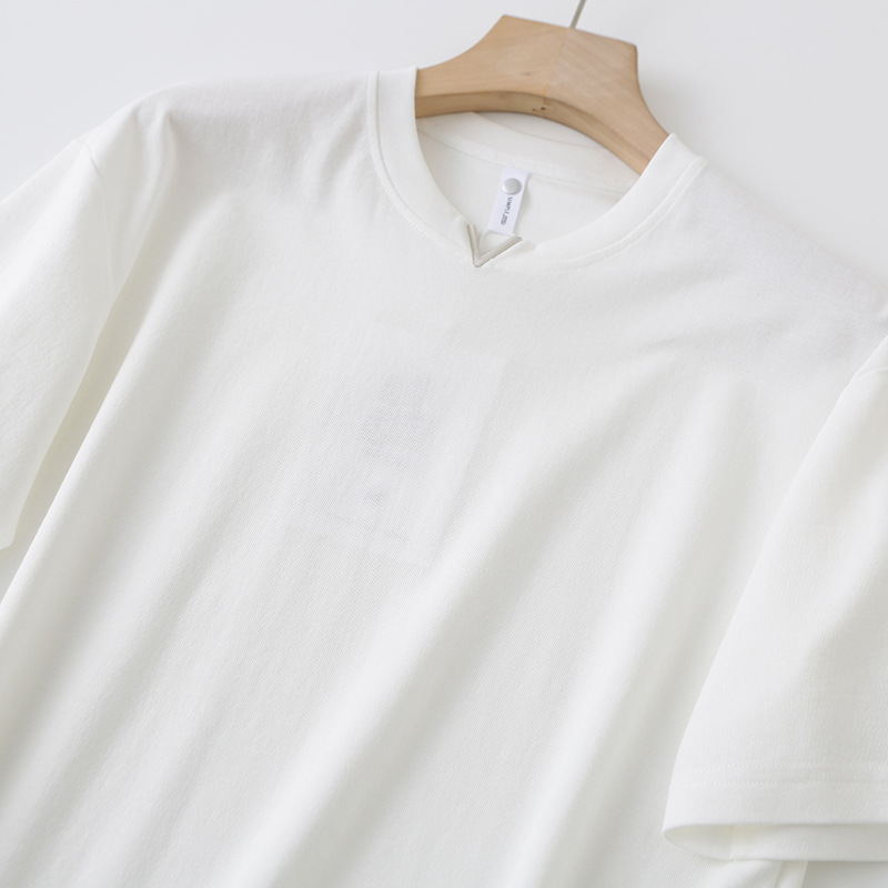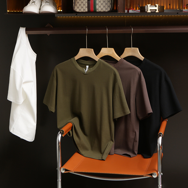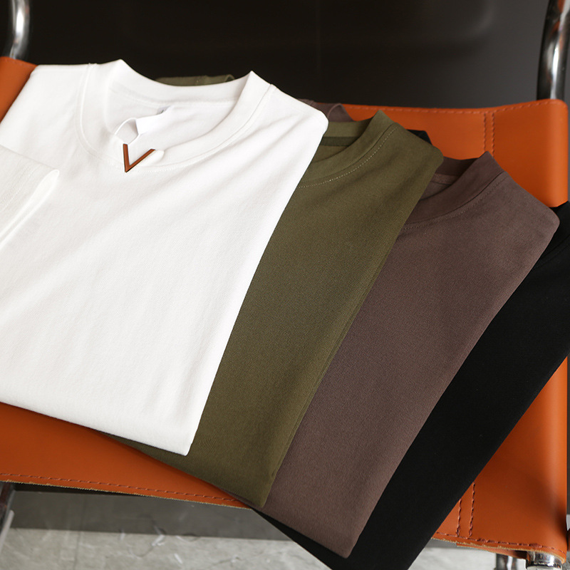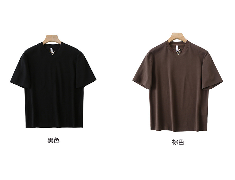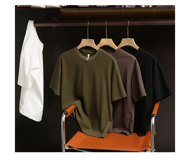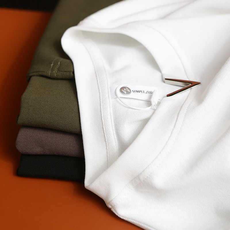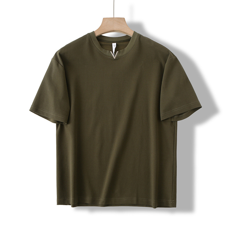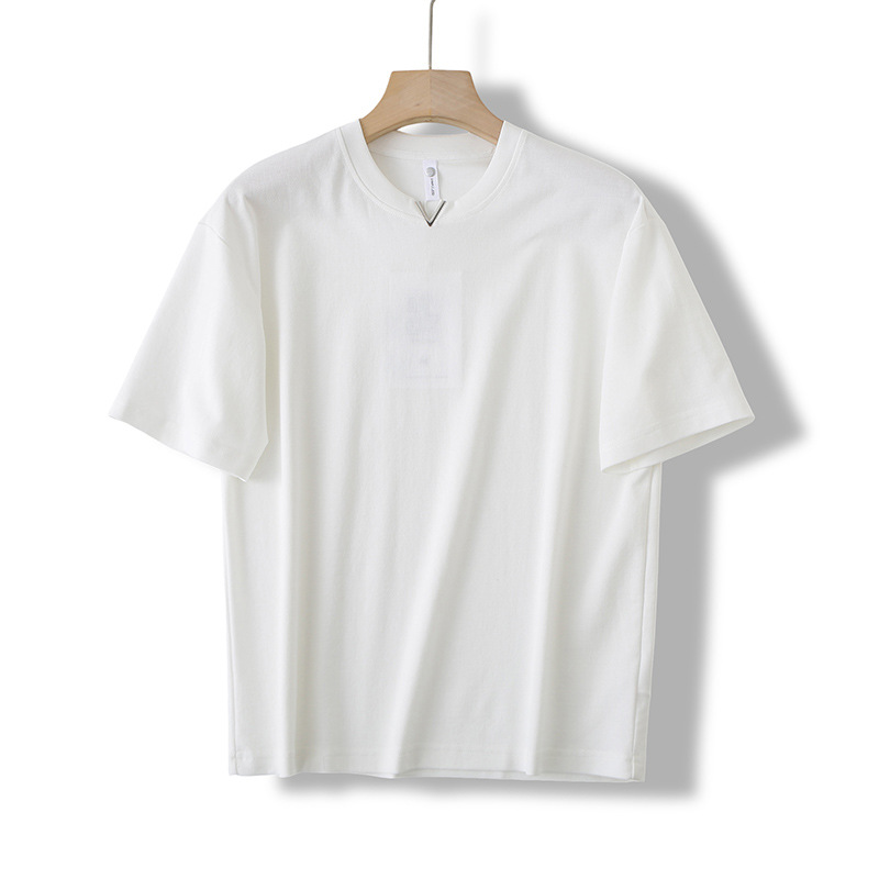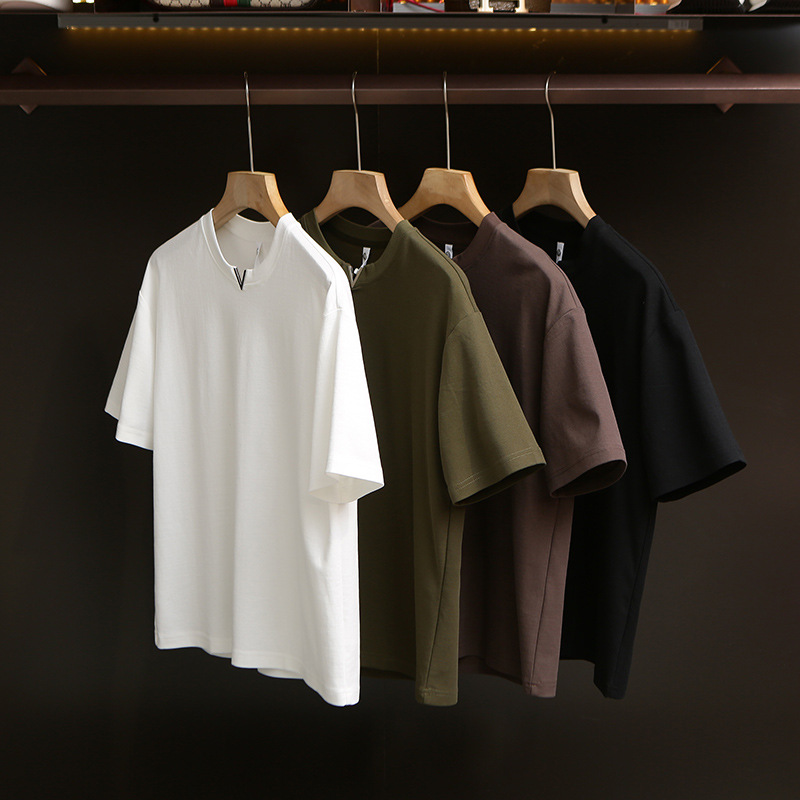 니트웨어 2025 새로운 여름 터프 맨 스타일 반팔 티셔츠 작은 V 넥 남자 느슨한 캐주얼 탑베이스