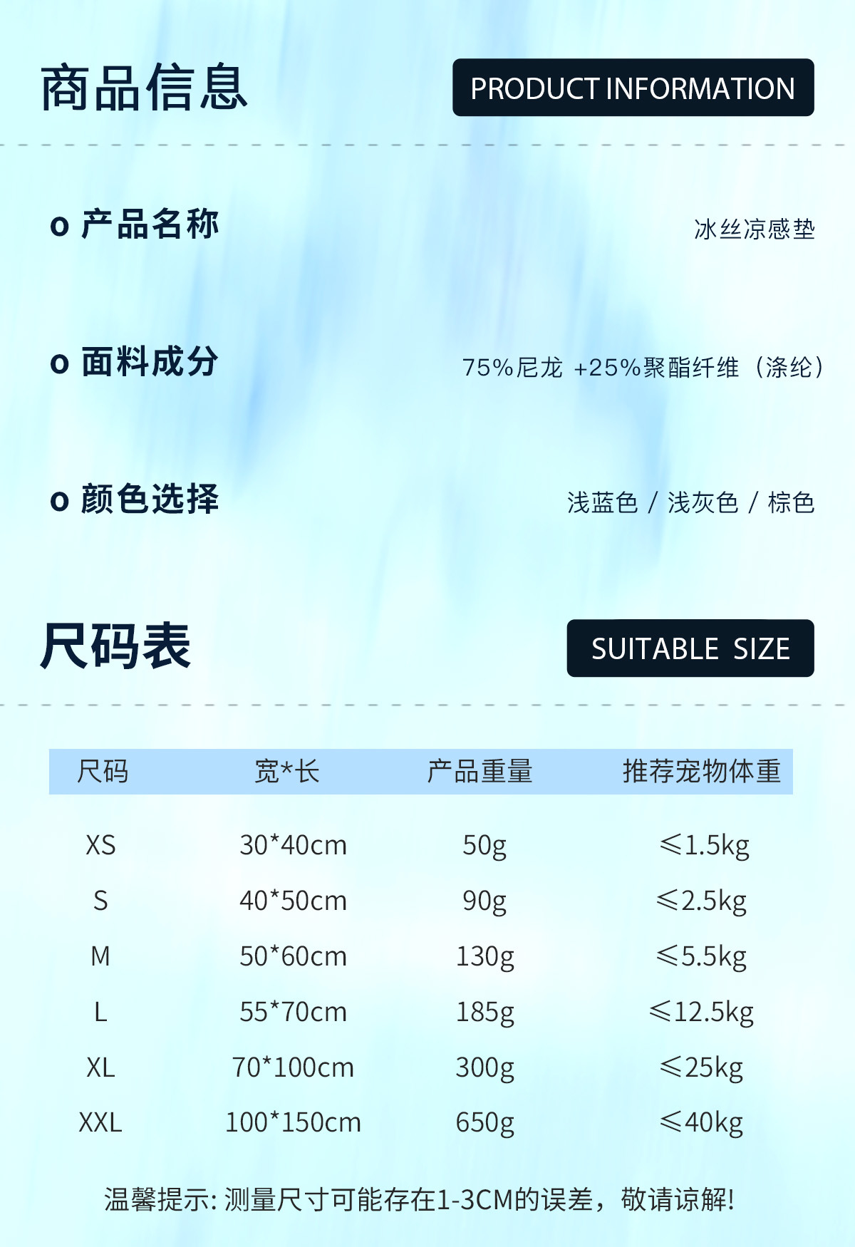 국경 간 인기 여름 냉각 애완 동물 매트 개와 고양이 둥지 얼음 실크 매트 바닥 매트 애완 동물 용품 도매 직접 판매