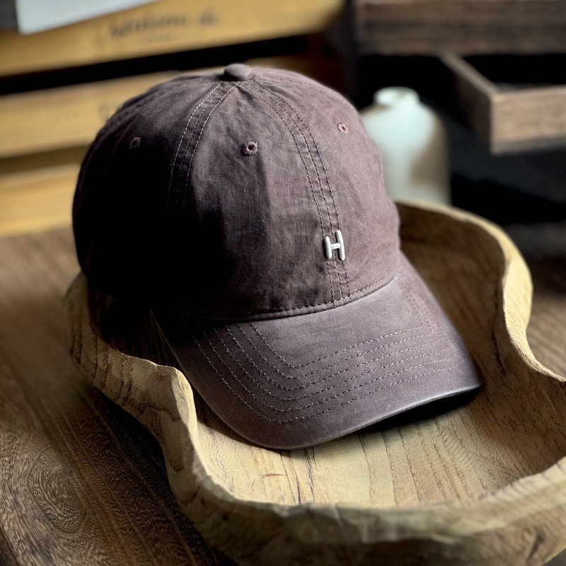 日本高品质原创极简设计水洗深顶复古棒球帽男大头围鸭舌帽女紫色