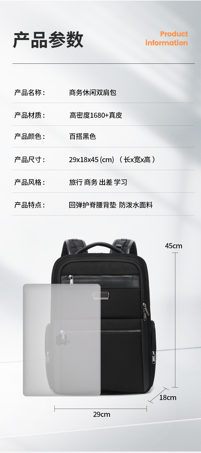 法莱阿玛尼男士双肩包商务通勤男包大容量电脑包潮流百搭旅行包