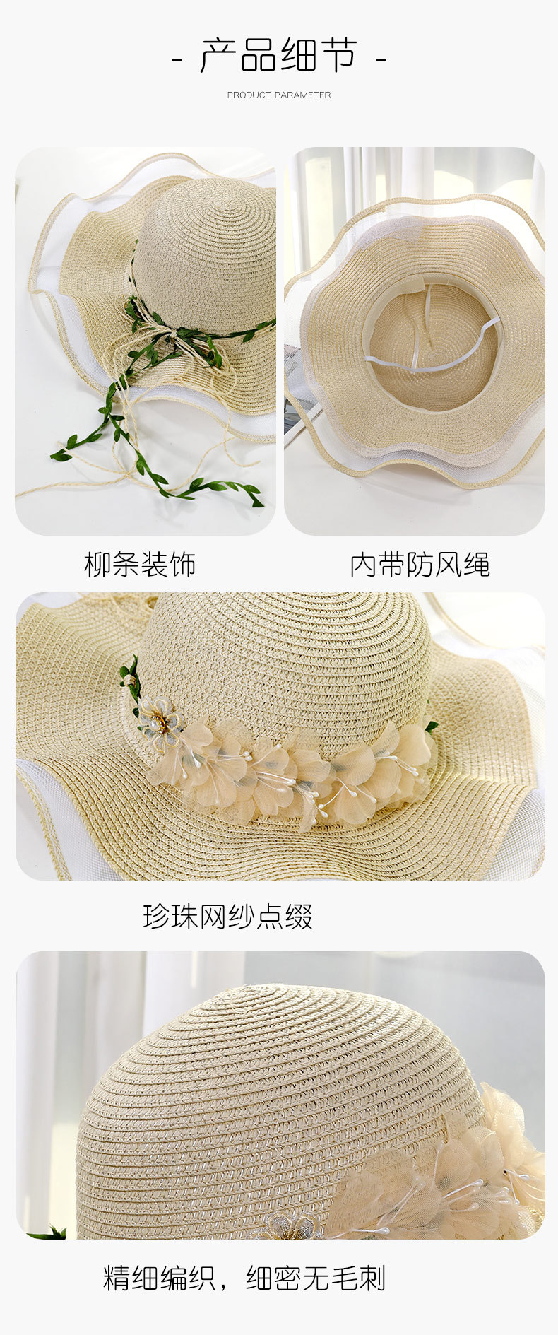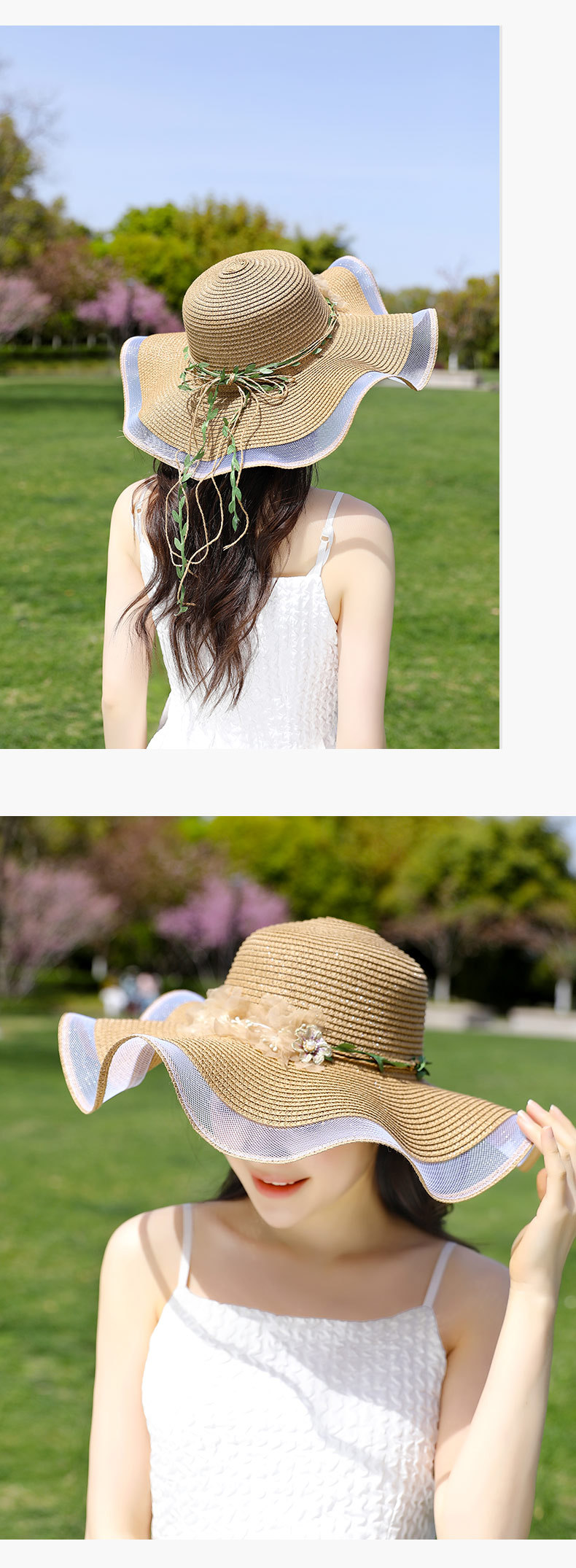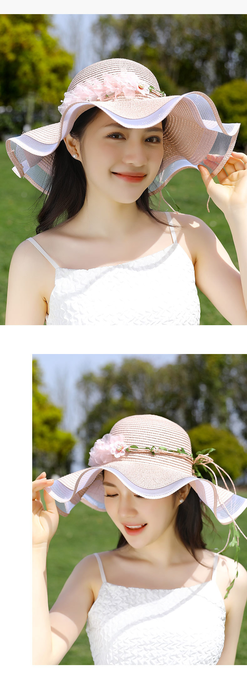 물결 모양의 가장자리 꽃 짠 밀짚 모자 여성의 여름 프랑스 스타일 해변 휴일 태양 모자 큰 브림 햇빛 햇살 모자스토어 가기