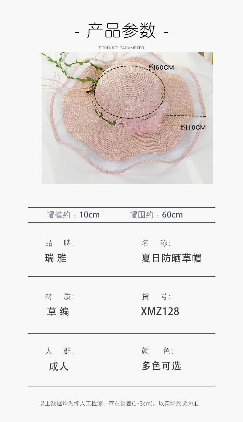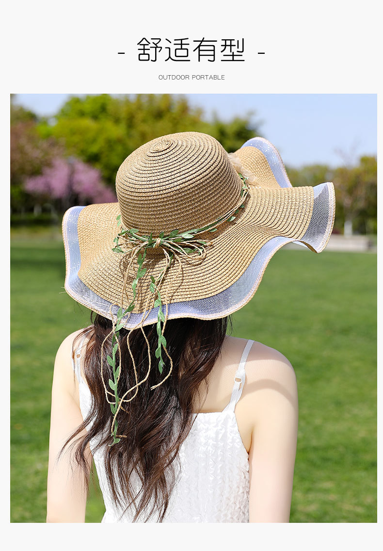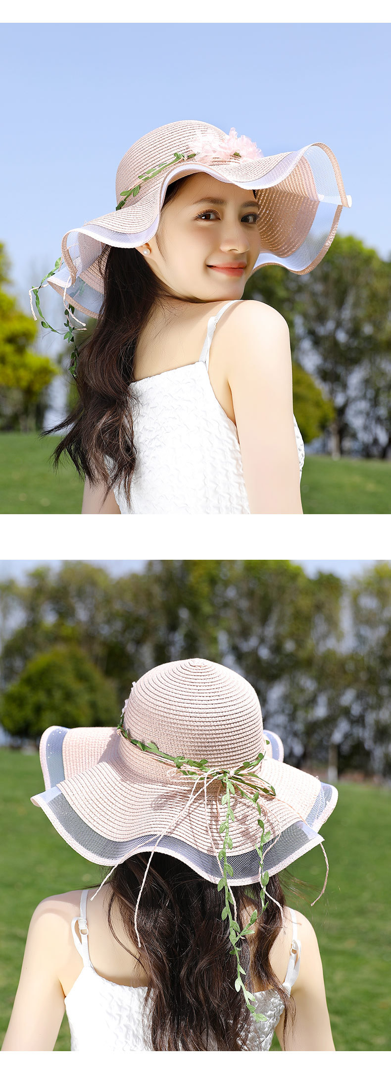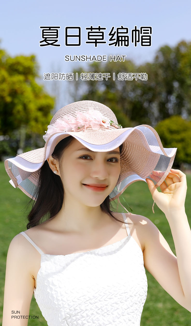 물결 모양의 가장자리 꽃 짠 밀짚 모자 여성의 여름 프랑스 스타일 해변 휴일 태양 모자 큰 브림 햇빛 햇살 모자스토어 가기