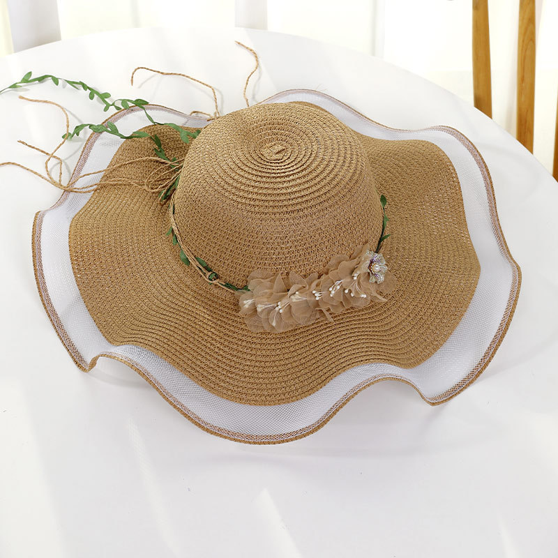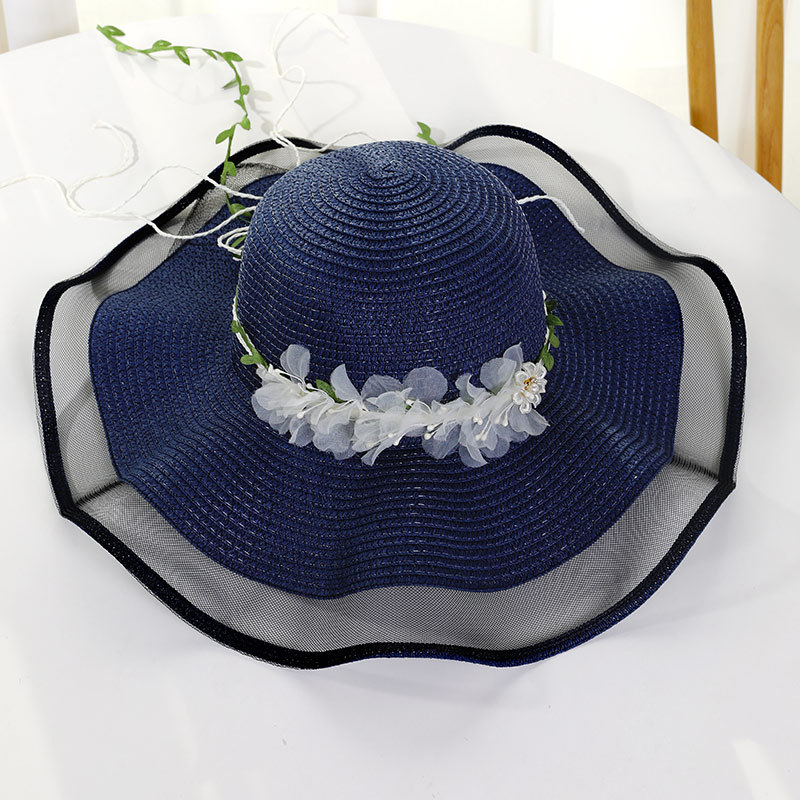 물결 모양의 가장자리 꽃 짠 밀짚 모자 여성의 여름 프랑스 스타일 해변 휴일 태양 모자 큰 브림 햇빛 햇살 모자
